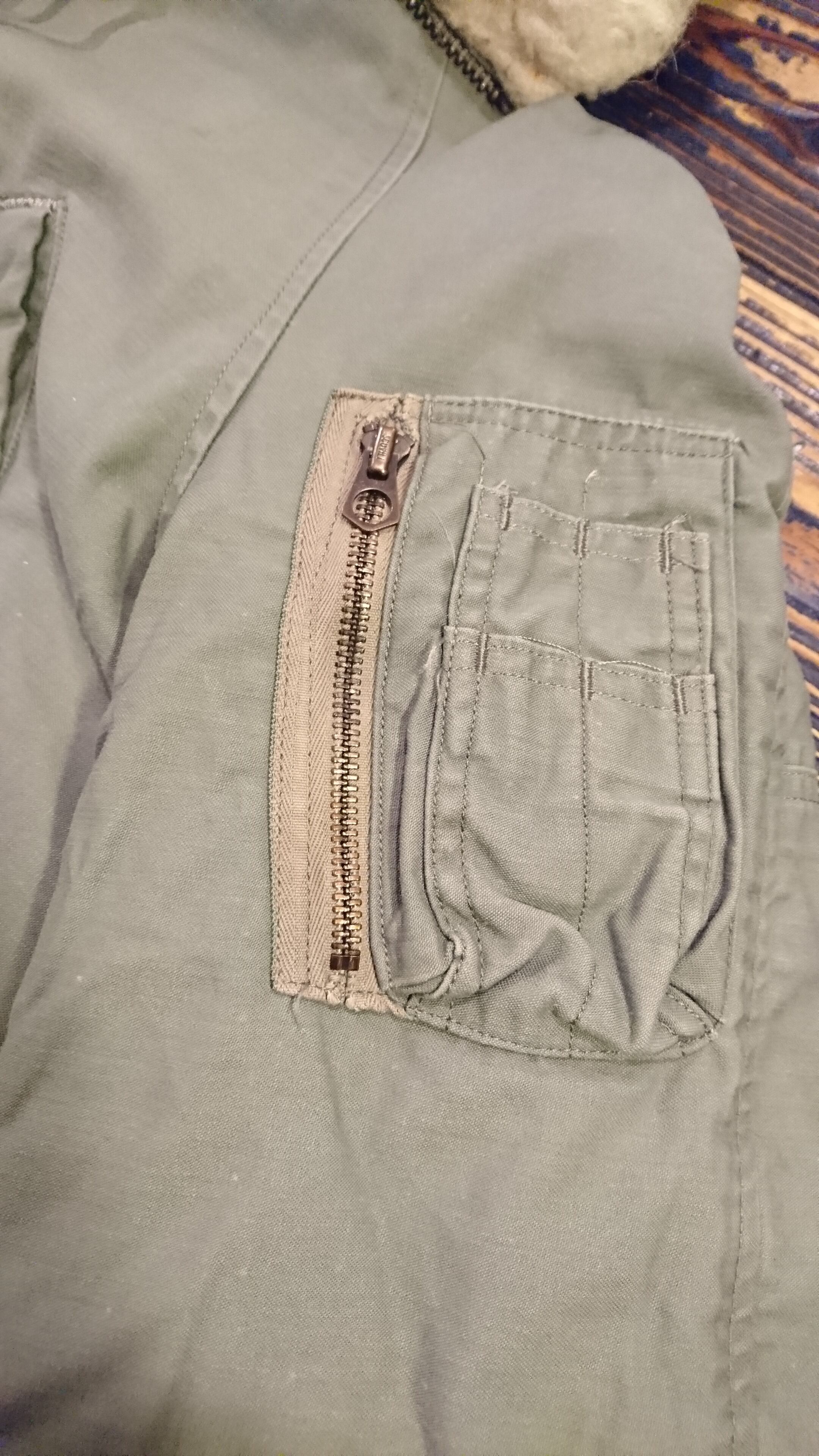 エアークルーを対象に開発、支給されたフライト防寒着。前身頃、背中、内側にインク汚れと内側裾に2ヵ所小さな傷がありますが着用に問題はありません。個人的にこの年代のN-3Bが好きで私も長年愛用してるジャケットの1つ。XSサイズは希少なのでジャストで着たい方にオススメです!