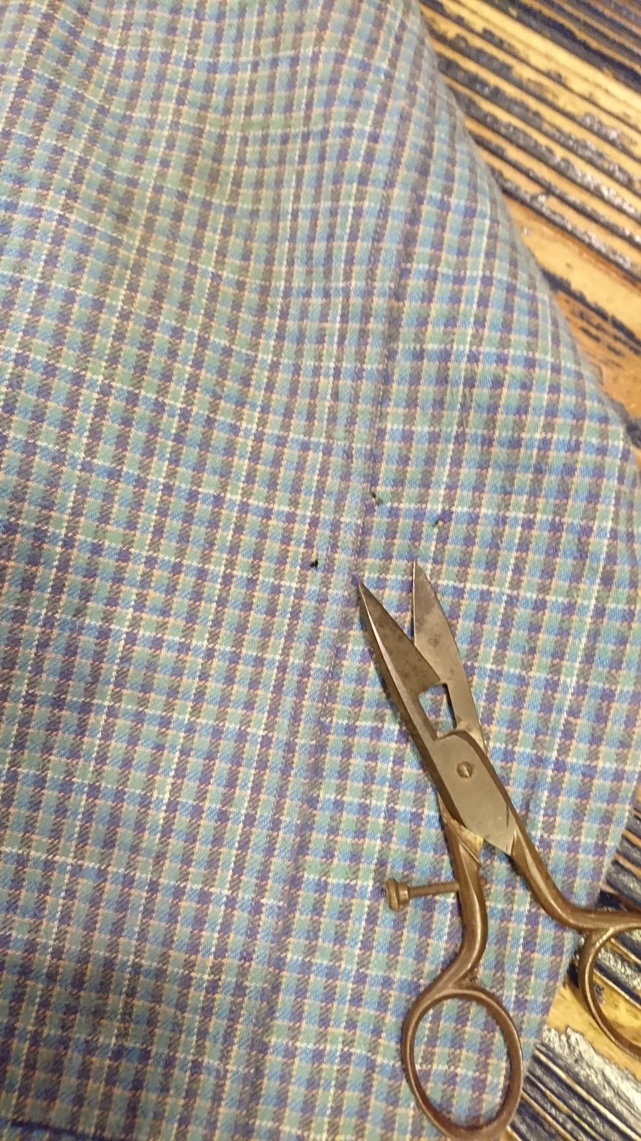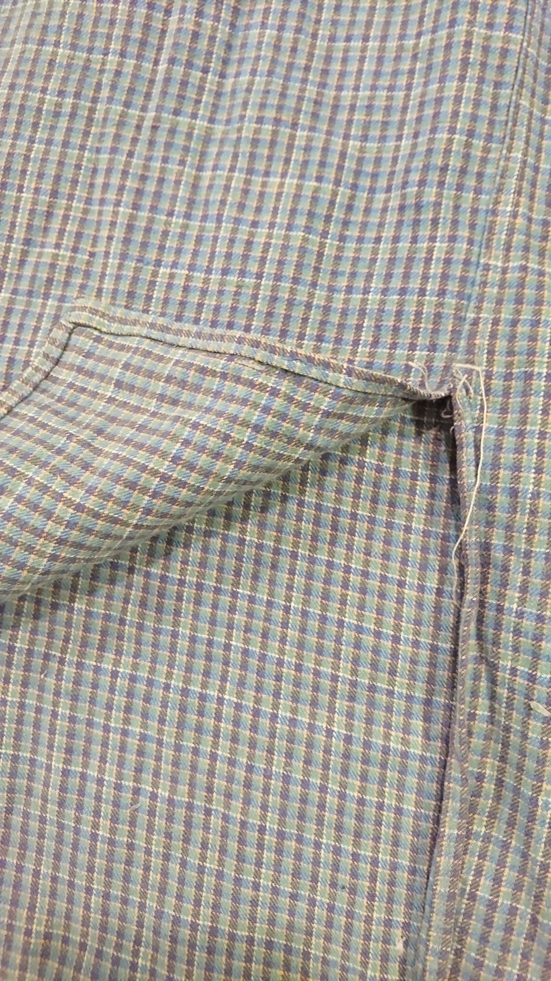 ネル生地。両胸にポケットは無いタイプになります。ファーマーシャツは前身頃より後ろ身頃が長いのも特徴。左腕に小さな傷と所々に染みがありますがそこも雰囲気。古いタグも残っております。サイズが合う方いかがでしょうか。