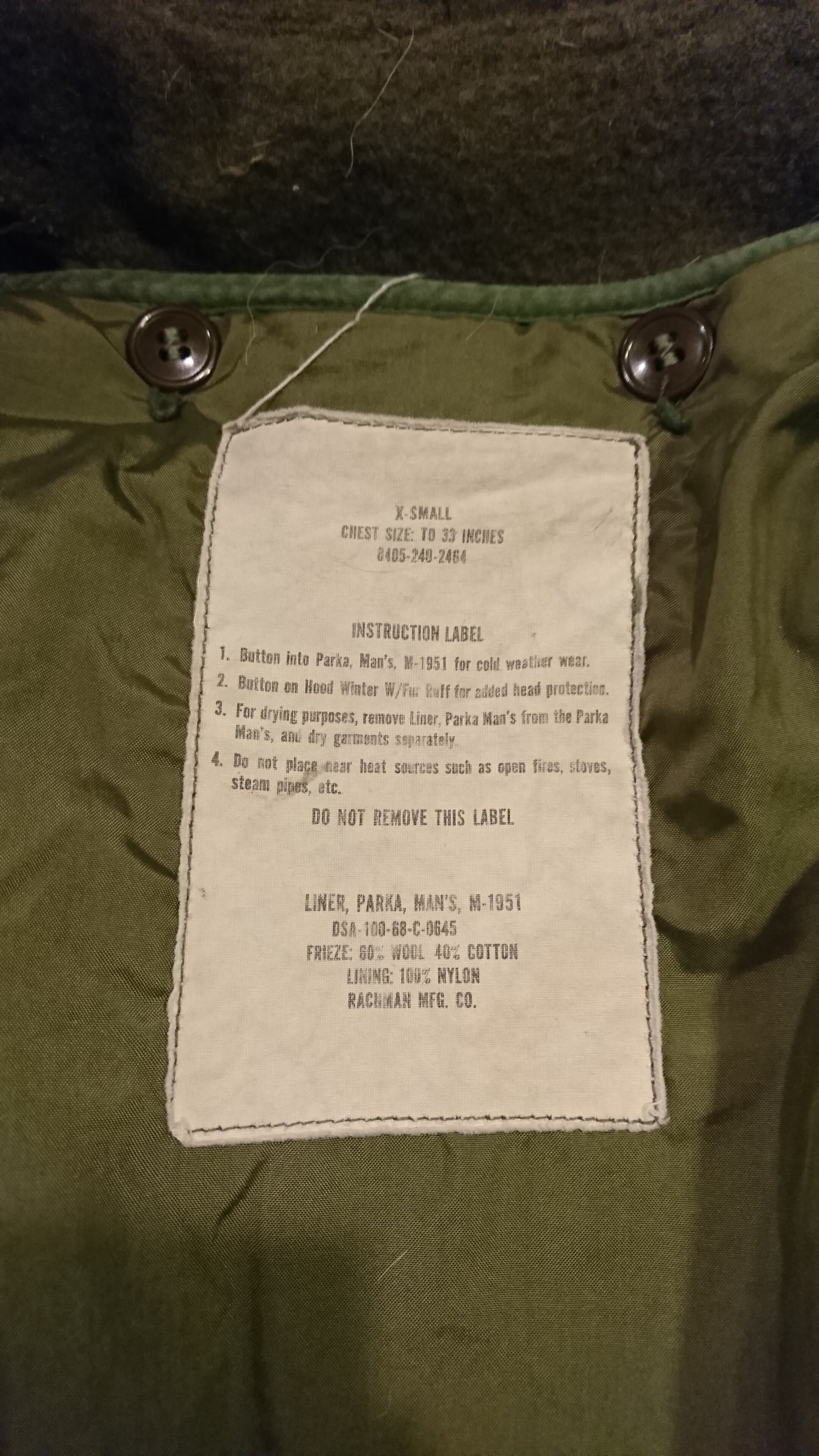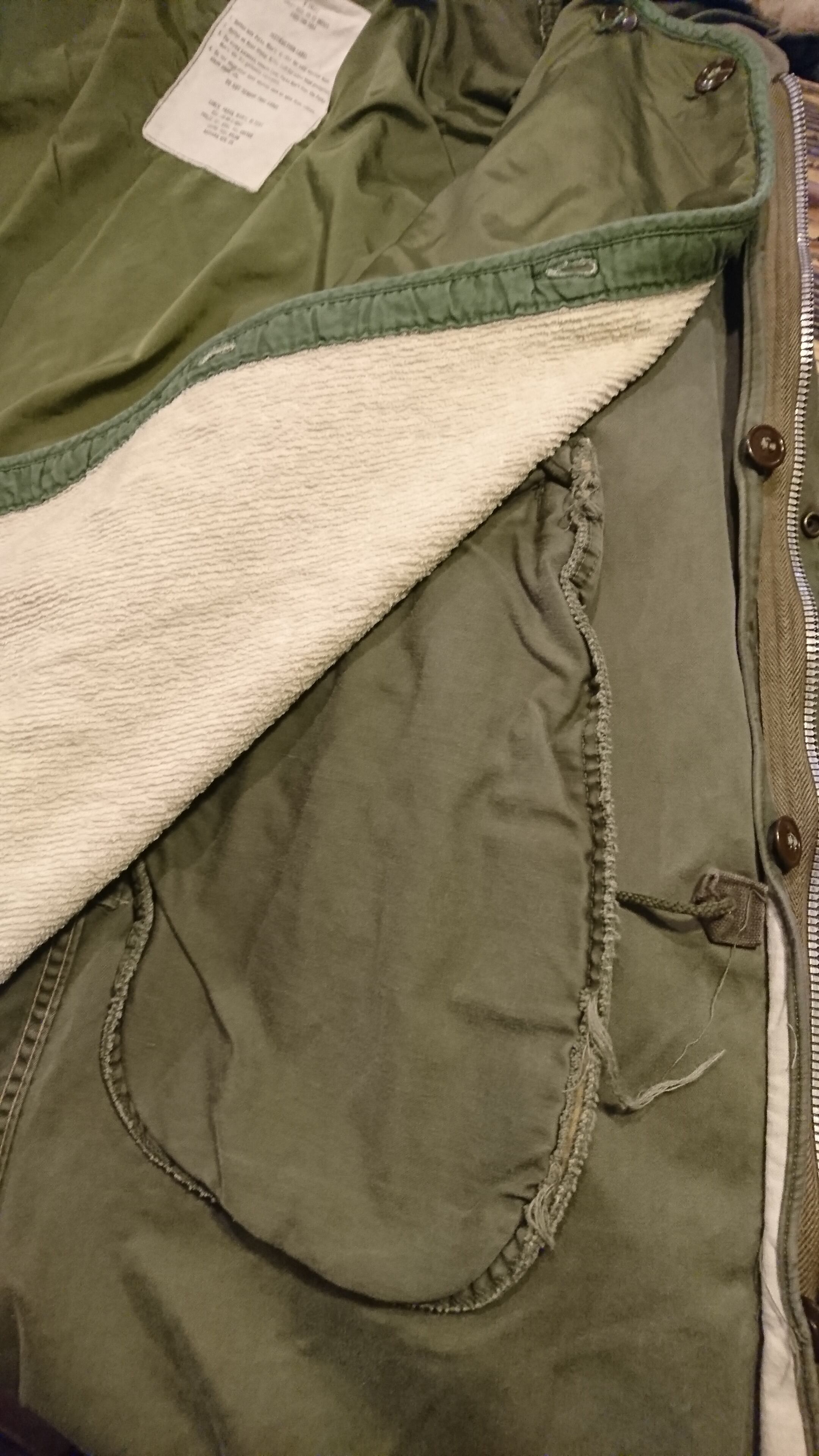 フード付きシェルで年代は異なりますがライナー、ファー付きフードもついております。シェルはサイズ表記がわからないですが着用した感じM位になります。ライナーのサイズはXSで、フード1ヶ所抜糸、両袖ボタン変更等ありますが着用に問題はありません。色褪せした雰囲気も男前な