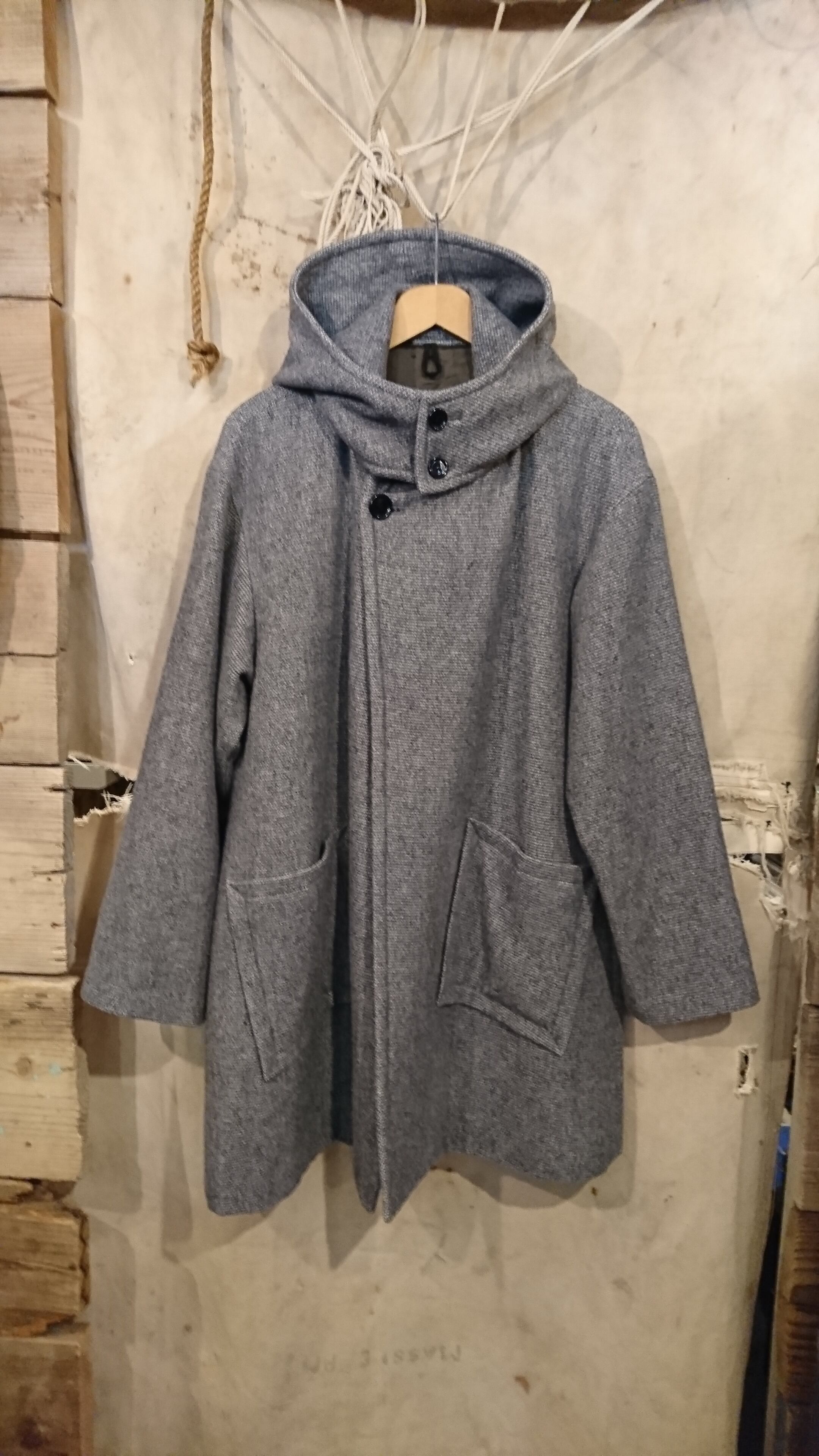 N HOOLYWOODのチマヨタイプのウールコートになります。フード付きでトップボタンでとめる