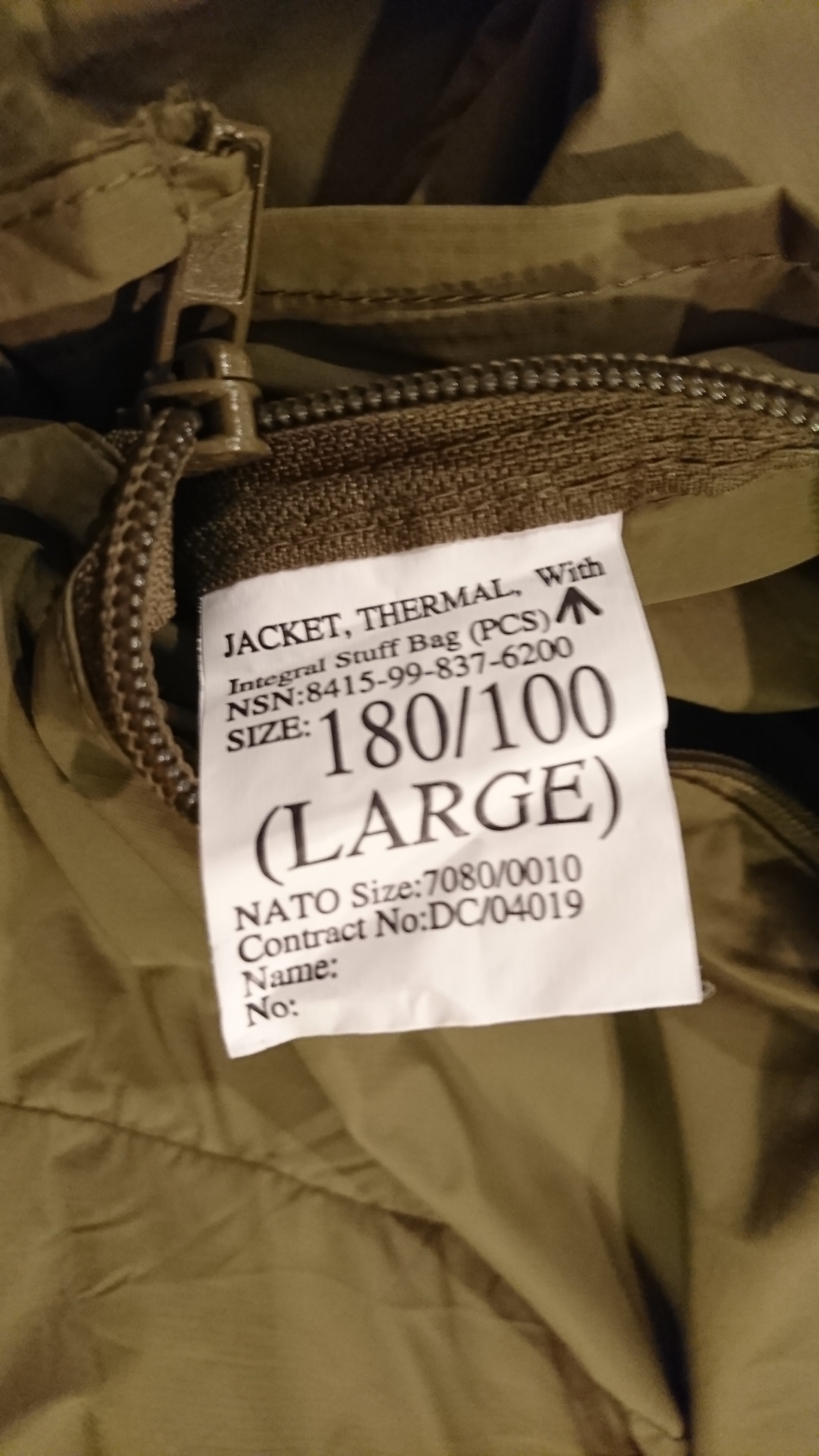 "British Army PCS Thermal Jacket Lsize" USED ③