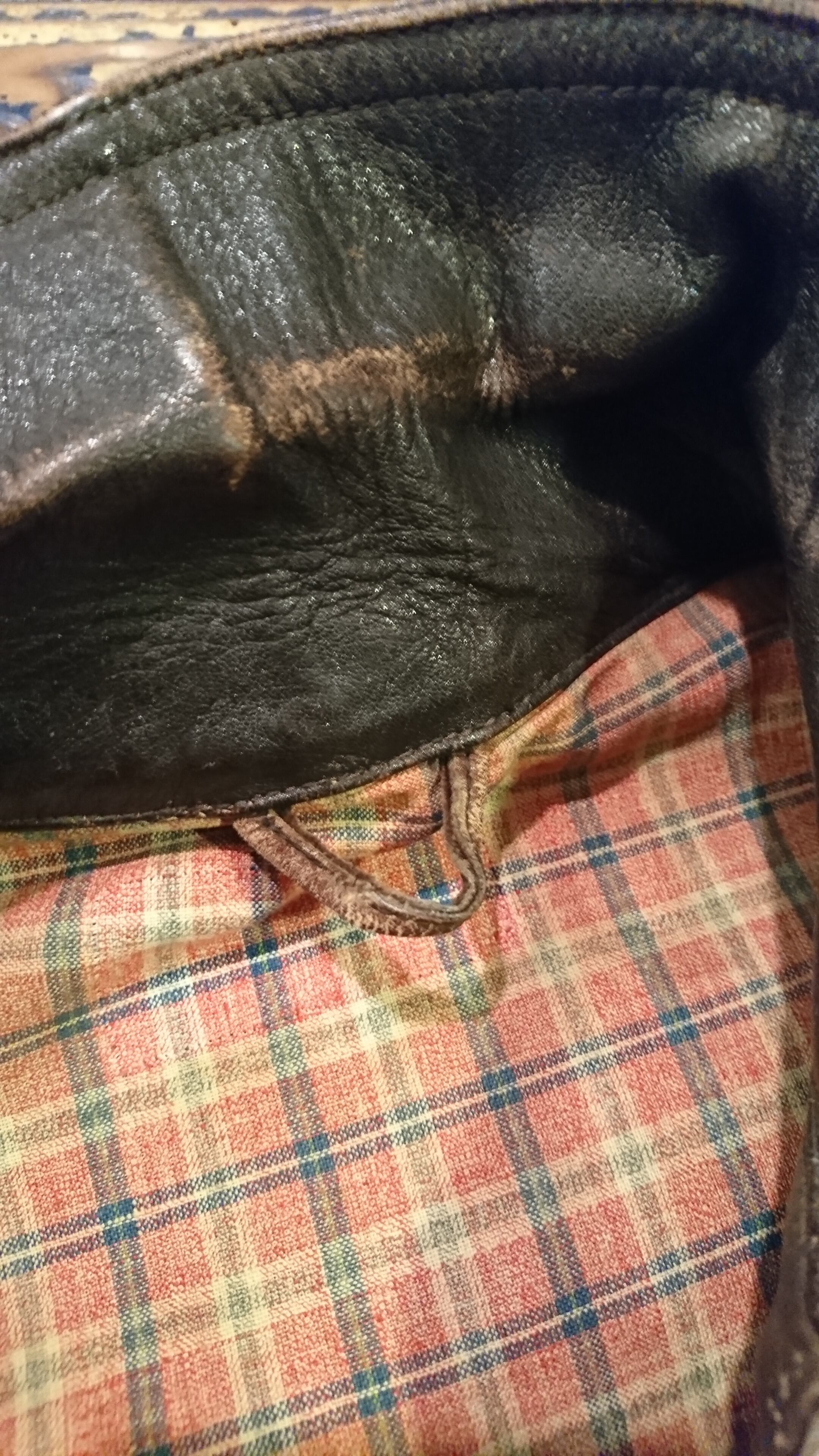裏地はチェック生地。若干のスレはあるものの