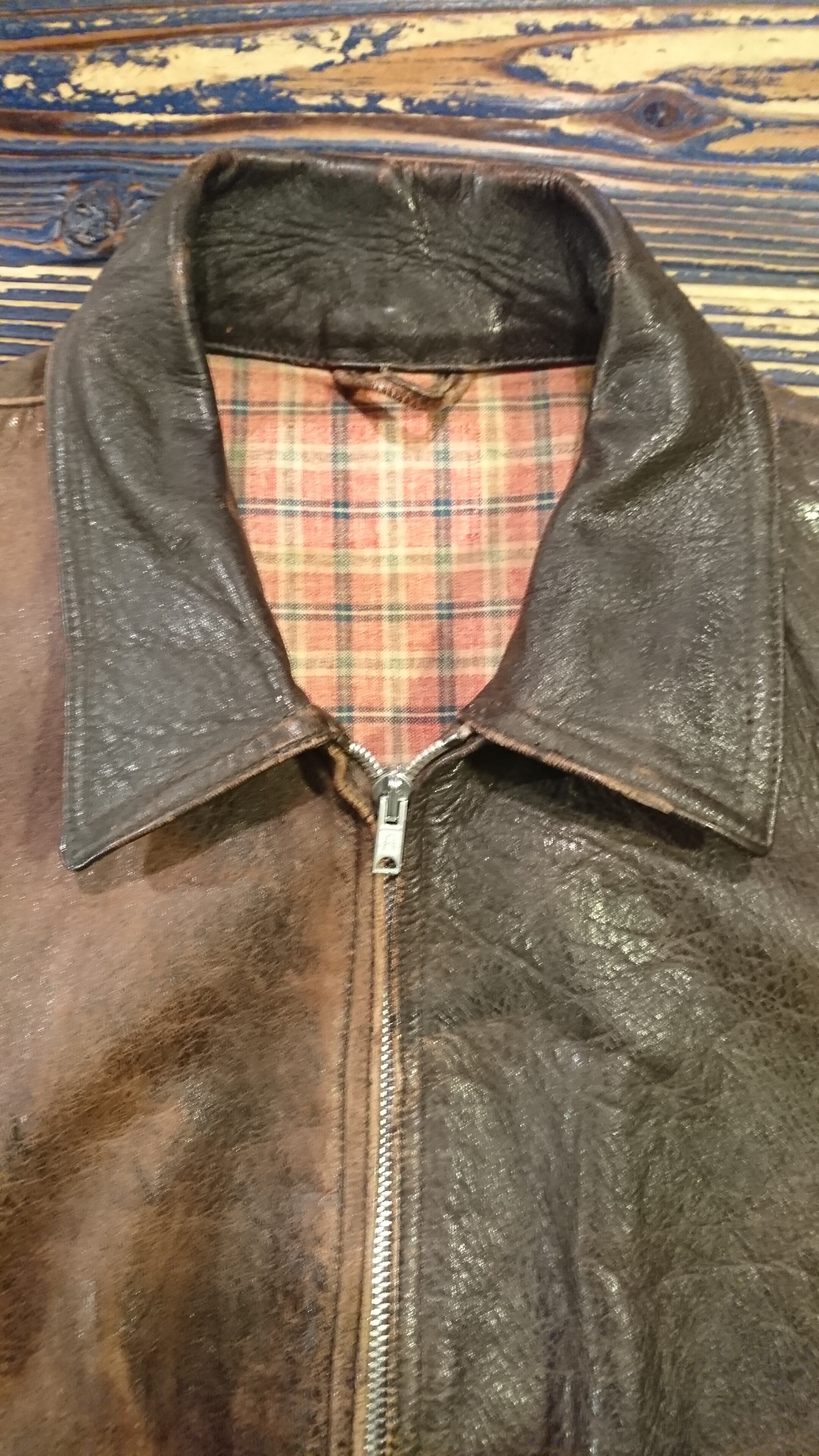 50年代のユーロ ホースレザージャケットになります。タグは欠損しておりブランドは不明。