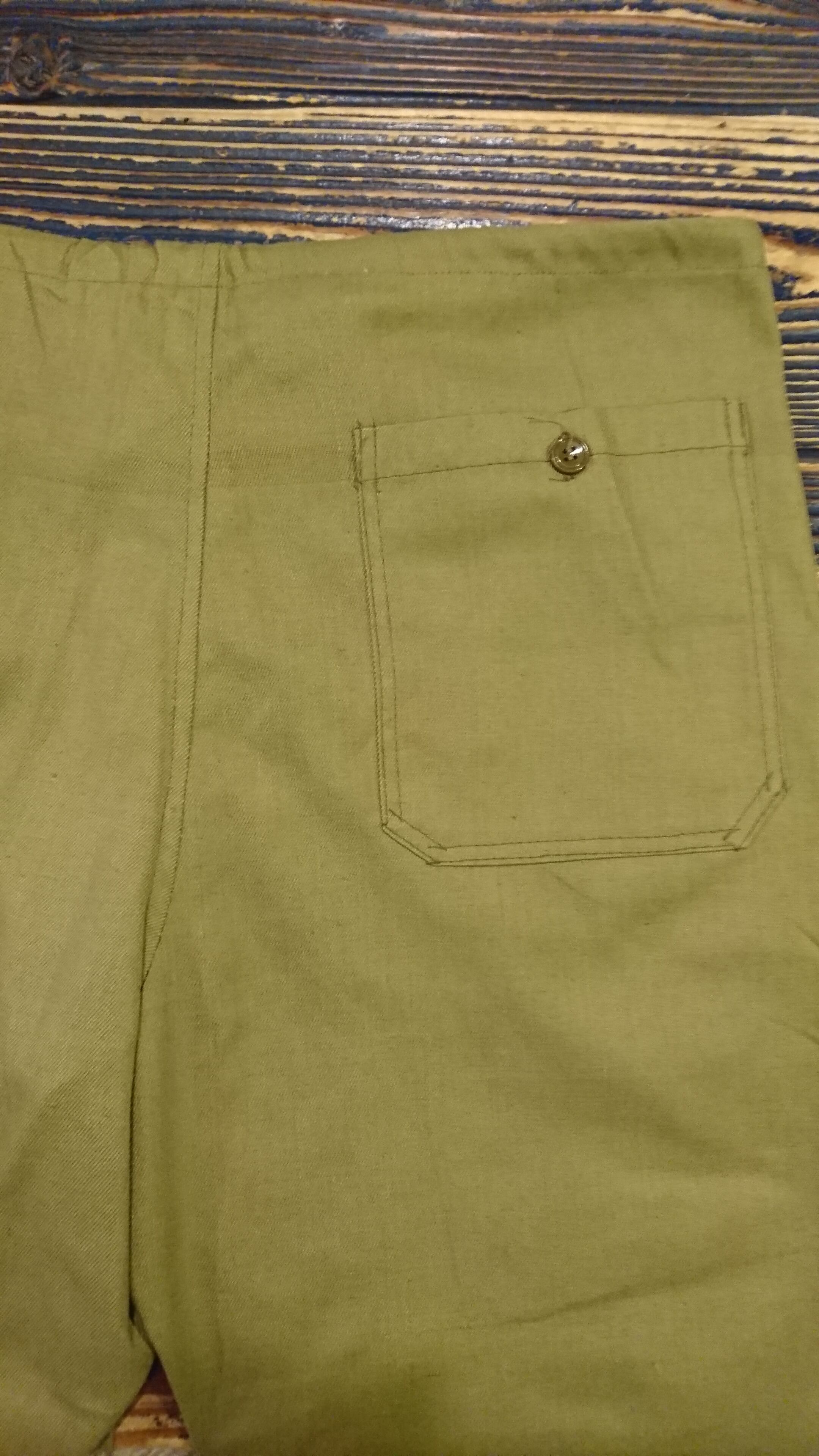 ルーマニア軍ミリタリーパンツのデッドストックになります。イージーパンツ仕様でベルトループは無く、ウエストは紐で縛るようになっています。両サイドにポケットとバックポケットは片方のみつき、とくに膝の補強のデザインが目を惹きます。テーパードした程よいゆとりのあるシルエット。素材はコットンで年代等で生地の色味、ポケット布、フロントと裏地のスタンプなど個体差があります。カラーはオリーブとカーキの中間色になります。