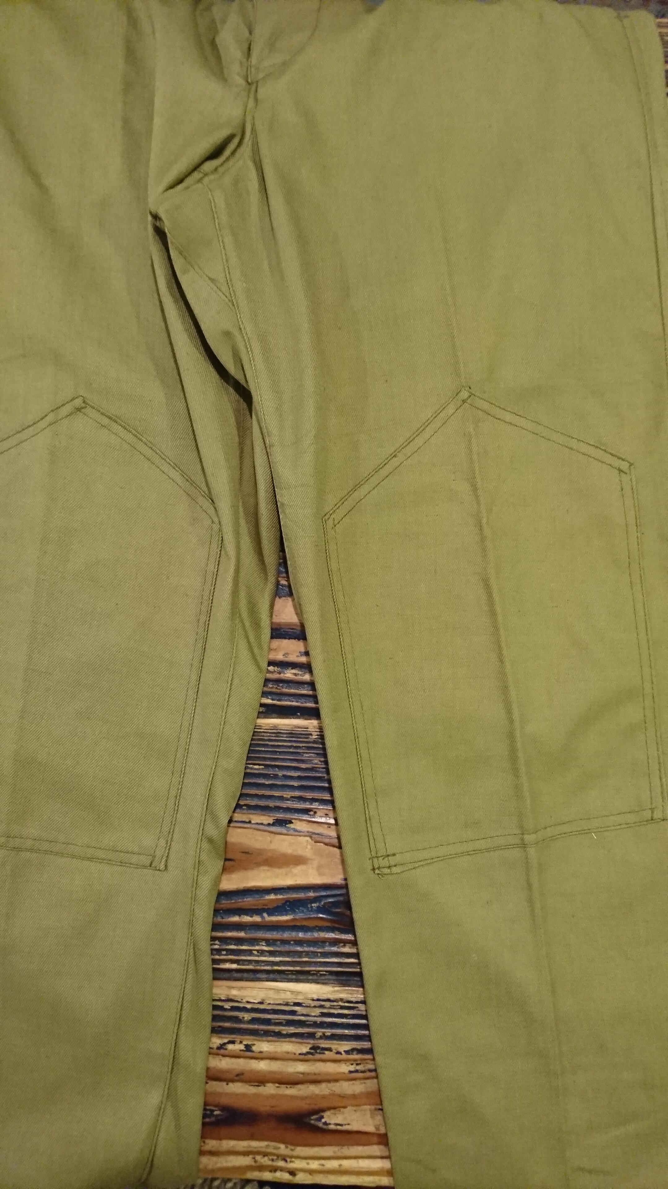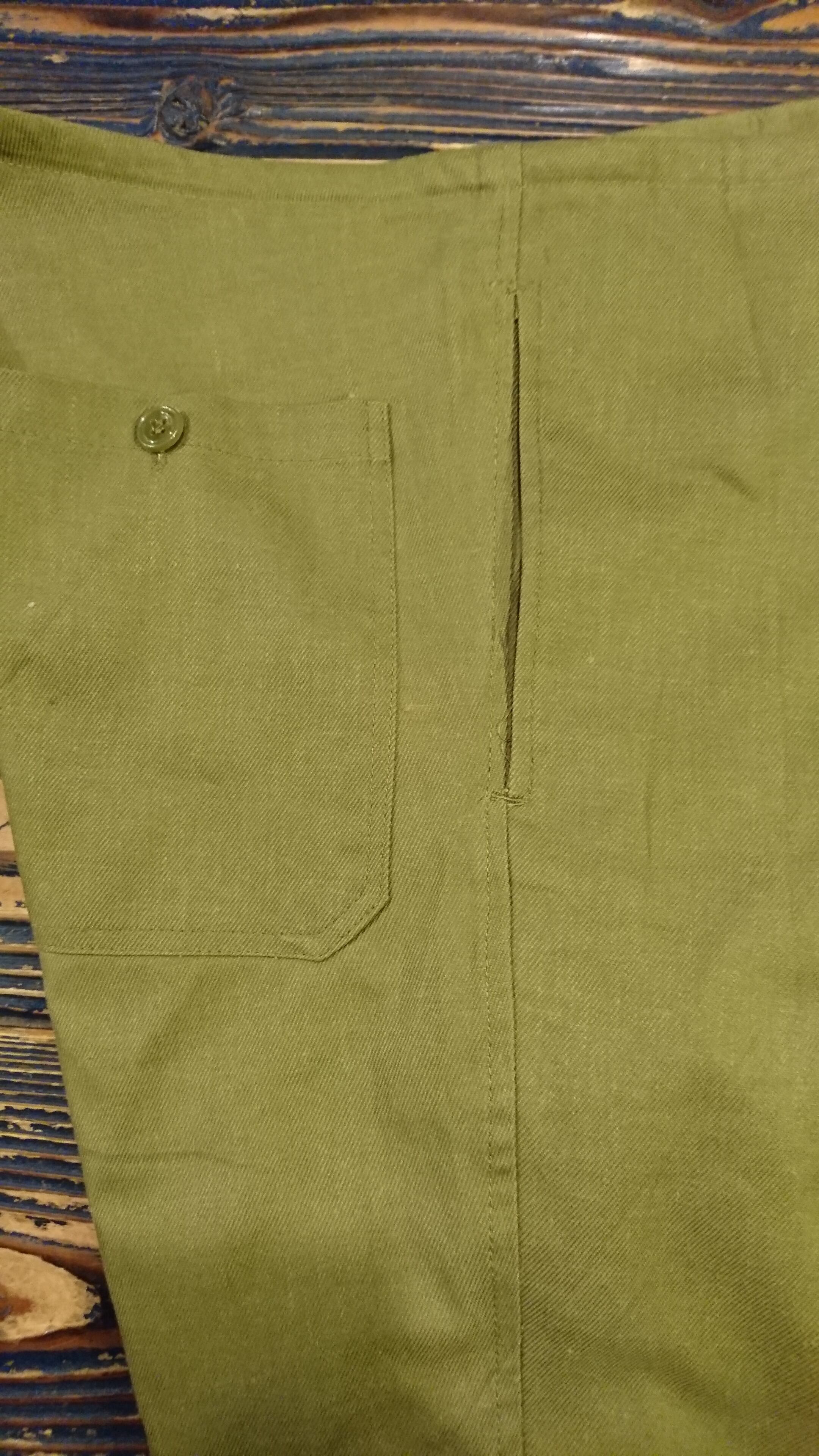 ルーマニア軍ミリタリーパンツのデッドストックになります。イージーパンツ仕様でベルトループは無く、ウエストは紐で縛るようになっています。両サイドにポケットとバックポケットは片方のみつき、とくに膝の補強のデザインが目を惹きます。テーパードした程よいゆとりのあるシルエット。素材はコットンで年代等で生地の色味、ポケット布、フロントと裏地のスタンプなど個体差があります。カラーはオリーブとカーキの中間色になります。