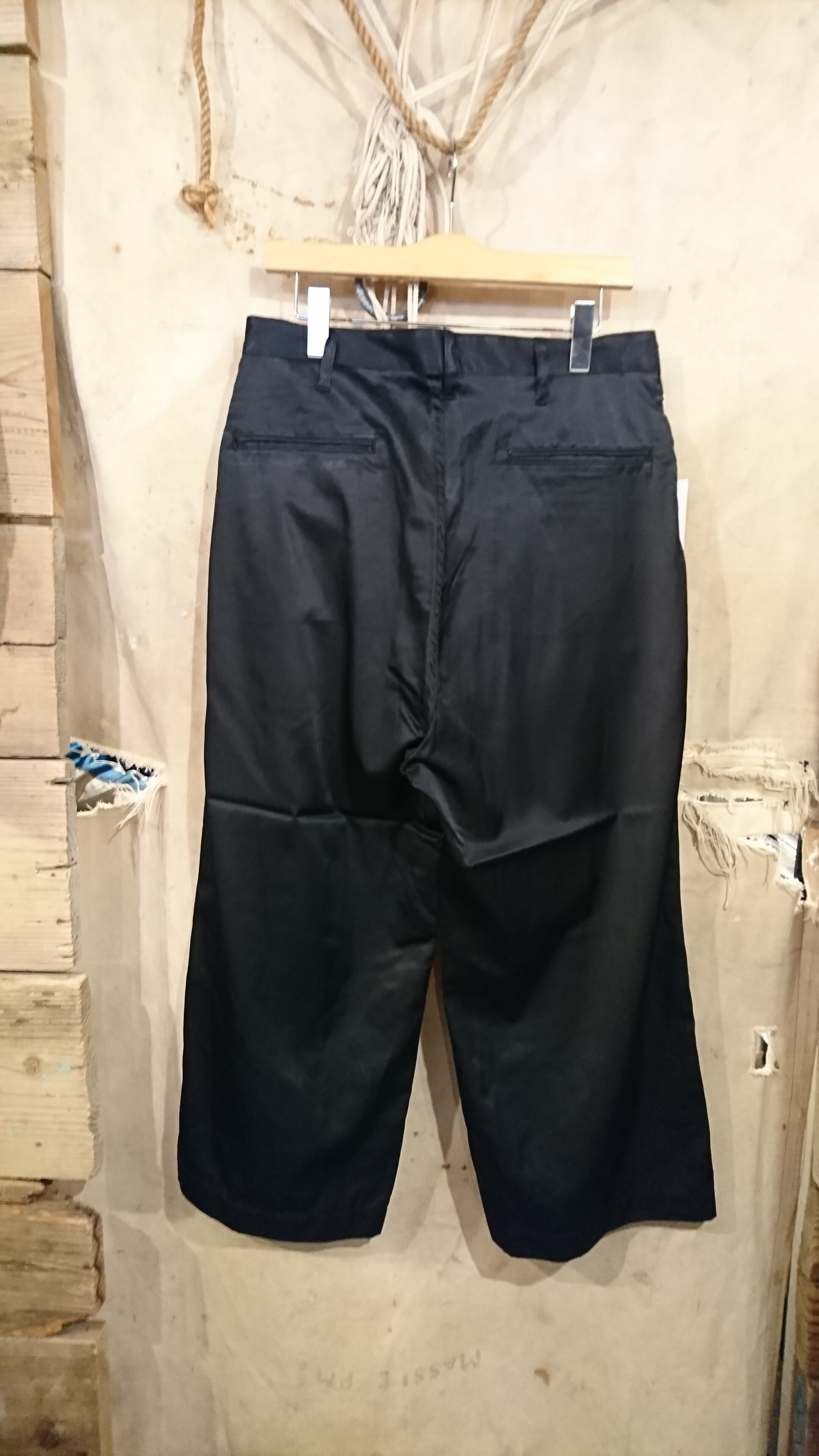 その為ストリートな雰囲気ながらもだらしなさが無く、レーヨンサテン生地なので光沢があって色気さも感じれる一本になってます。