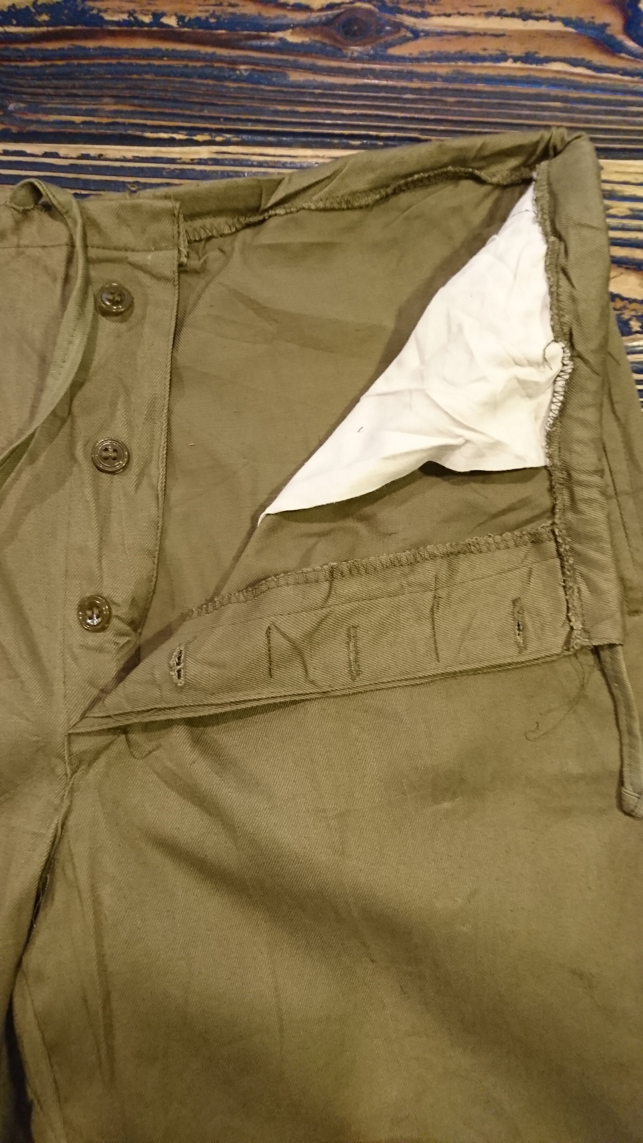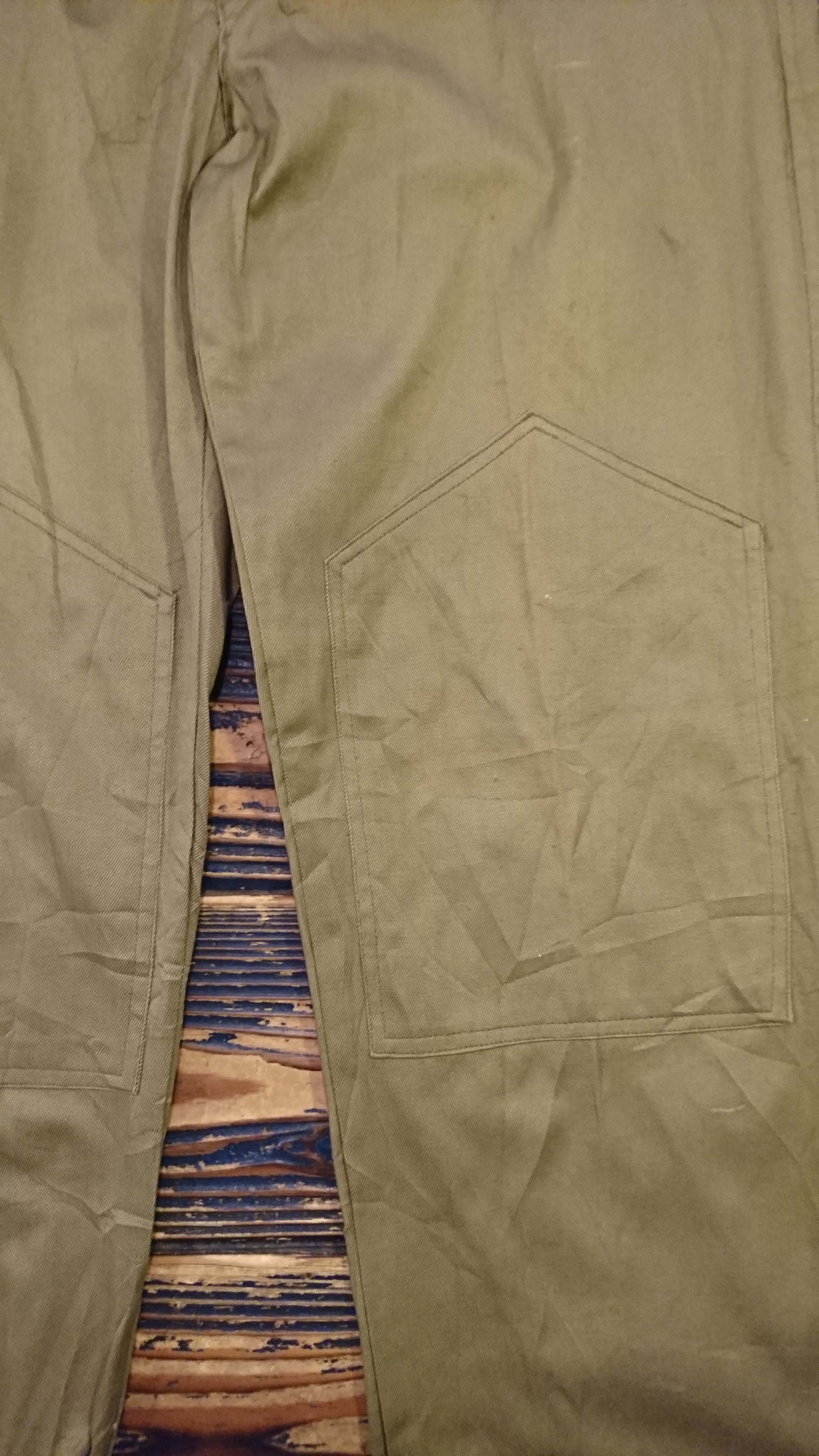 ルーマニア軍ミリタリーパンツのデッドストックになります。イージーパンツ仕様でベルトループは無く、ウエストは紐で縛るようになっています。両サイドにポケットとバックポケットは片方のみつき、とくに膝の補強のデザインが目を惹きます。テーパードした程よいゆとりのあるシルエット。素材はコットンで年代等で生地の色味、ポケット布、フロントと裏地のスタンプなど個体差があります。カラーはオリーブとカーキの中間色になります。