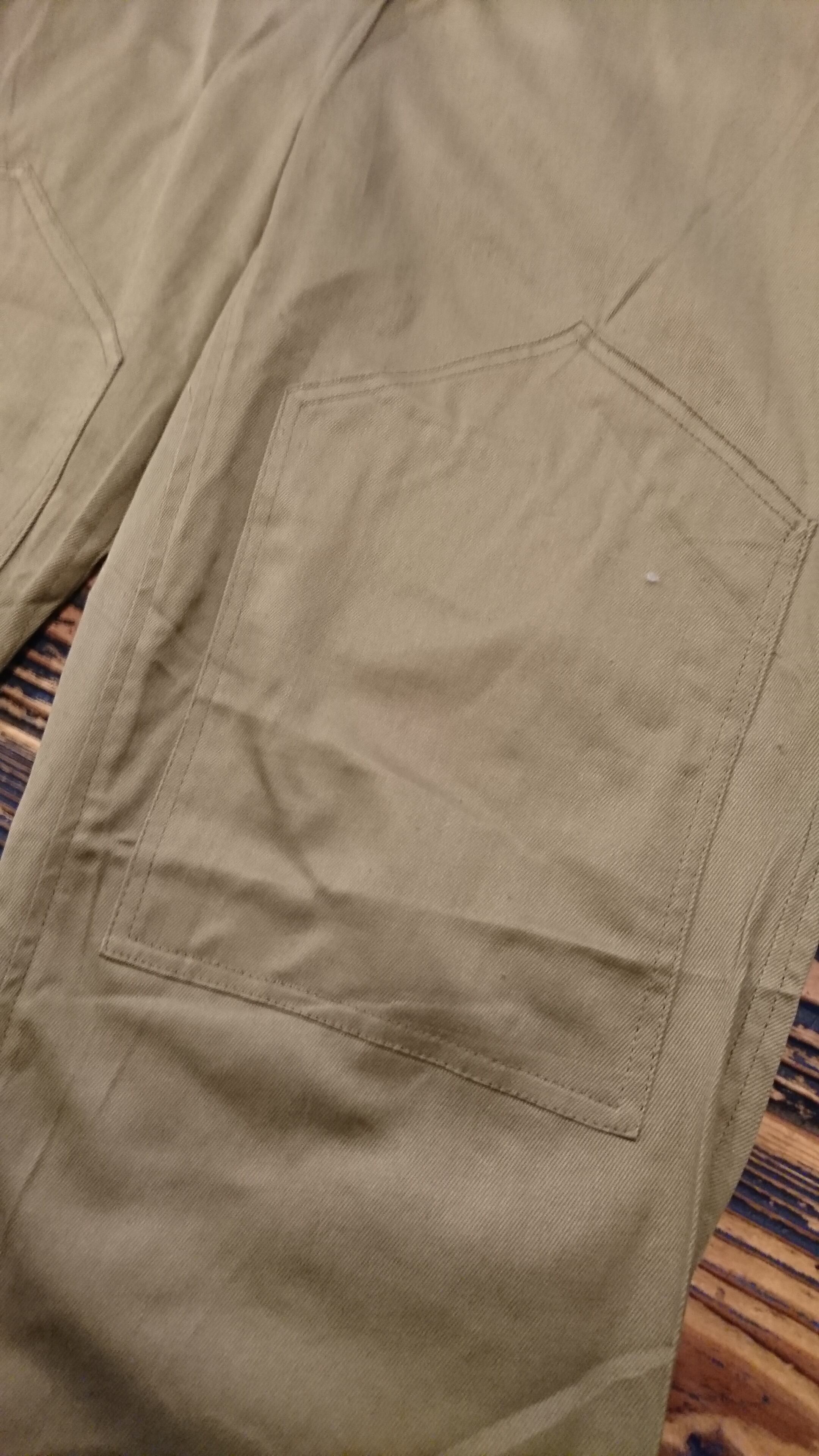 ルーマニア軍ミリタリーパンツのデッドストックになります。イージーパンツ仕様でベルトループは無く、ウエストは紐で縛るようになっています。両サイドにポケットとバックポケットは片方のみつき、とくに膝の補強のデザインが目を惹きます。テーパードした程よいゆとりのあるシルエット。素材はコットンで年代等で生地の色味、ポケット布、フロントと裏地のスタンプなど個体差があります。カラーはオリーブとカーキの中間色になります。