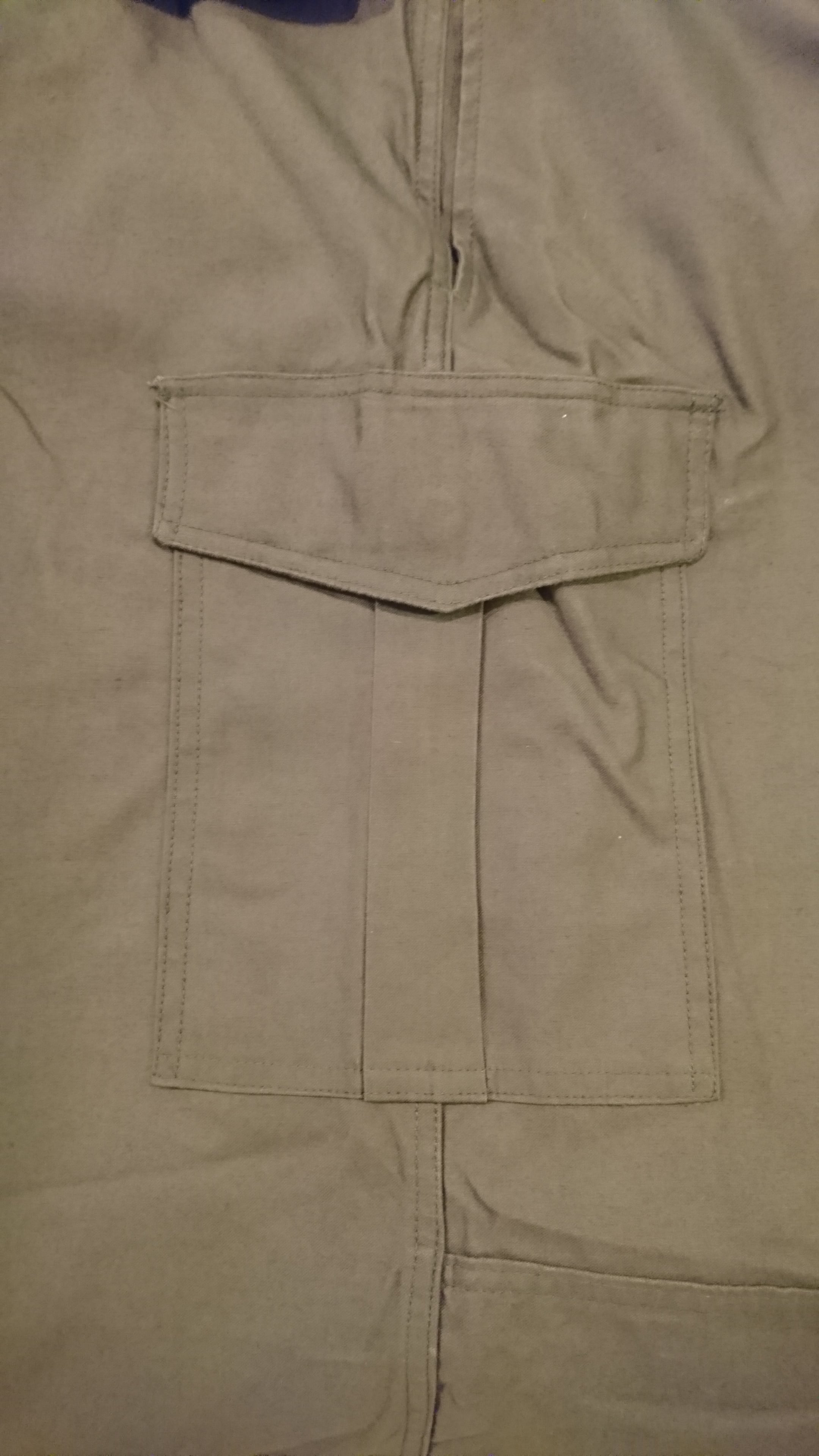 カーゴパンツのように両サイドにフラップポケットはつかず右側のみにつくデザイン。