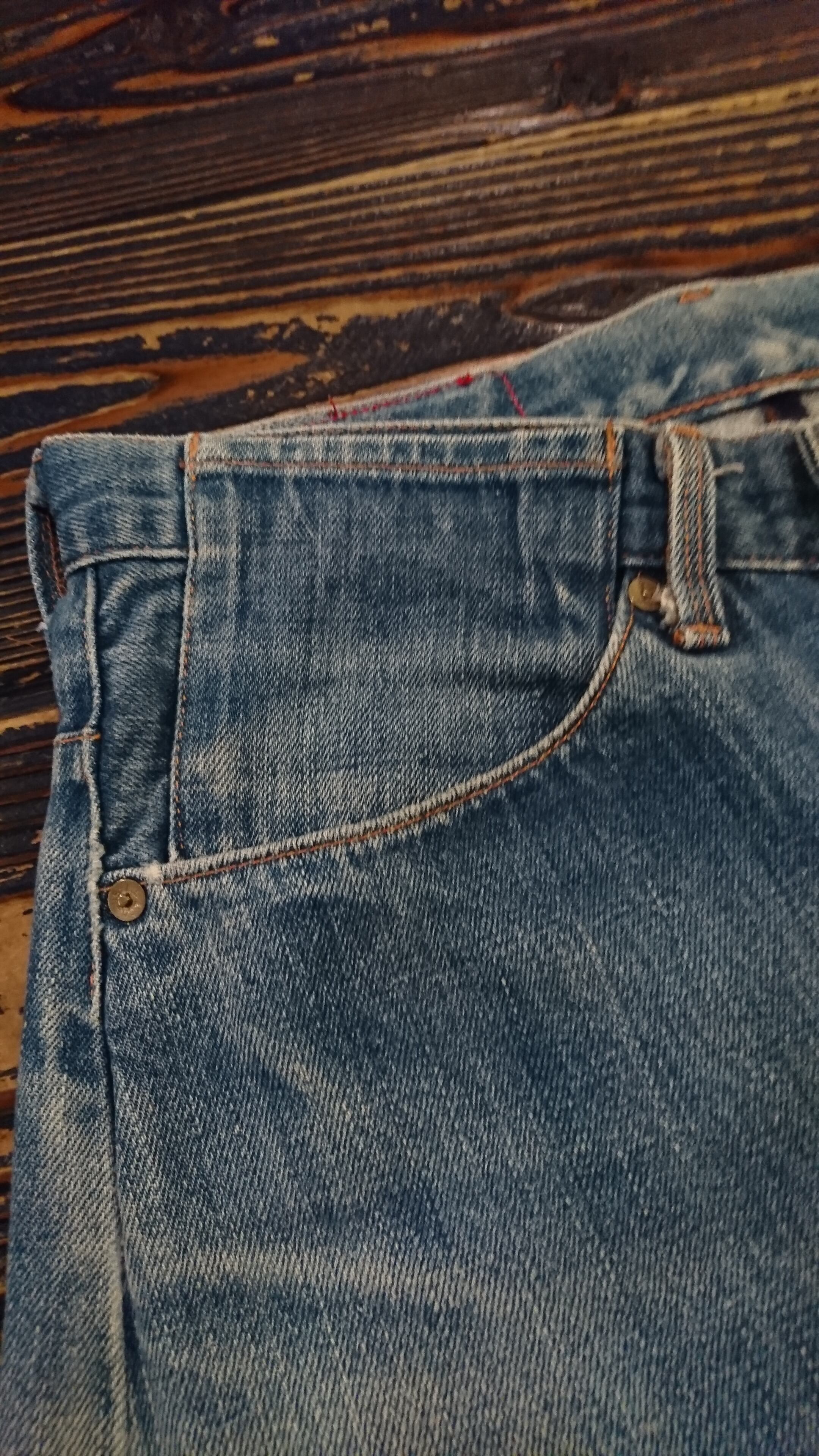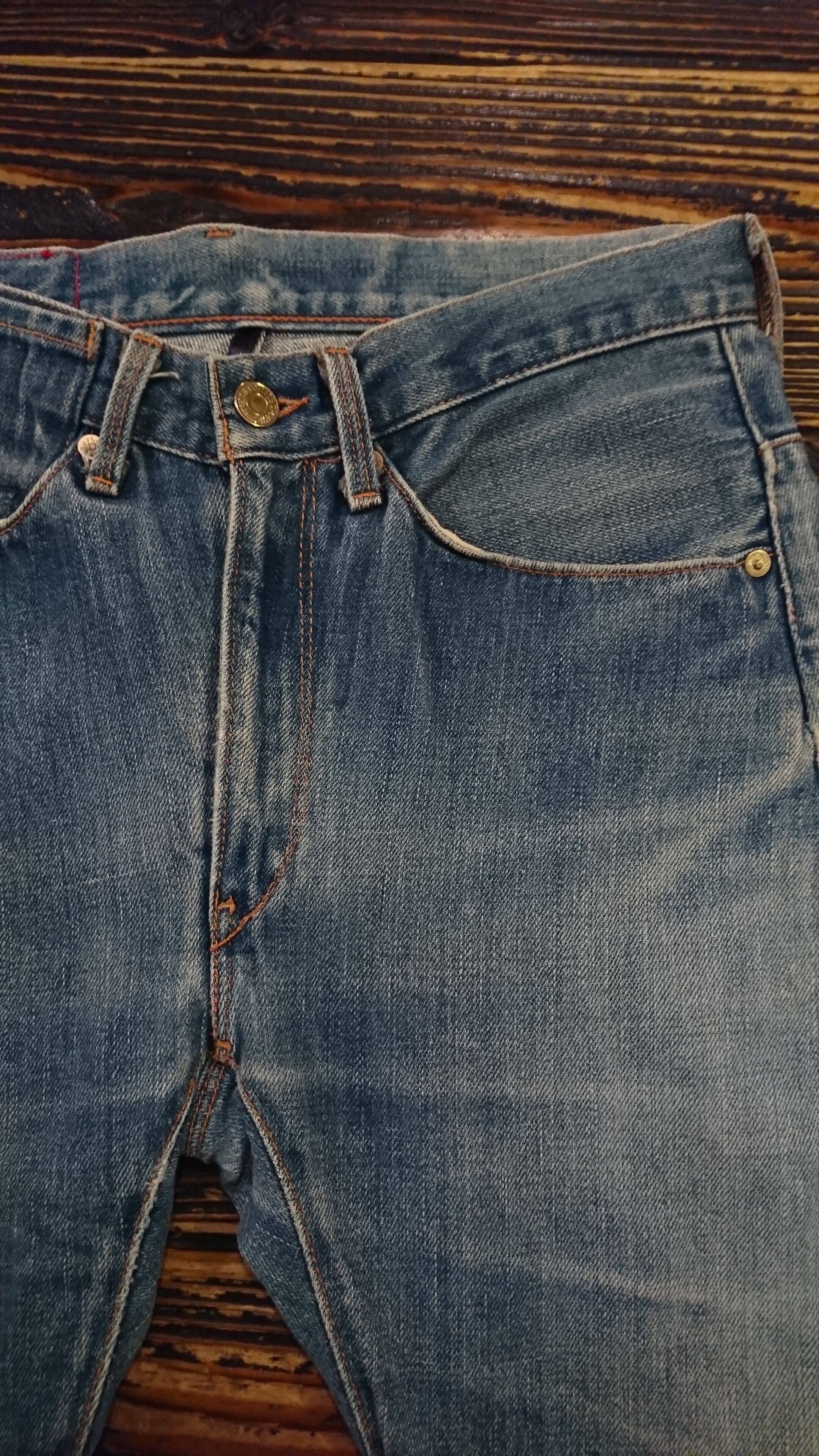 昨今人気のLEVI'S RED。1st STANDARDに似ていてヒップポケットのフラップが無いタイプになります。全体的に良い感じに色落ちし、雰囲気すら感じれる一本です。ヒップにインク汚れみたいなのが数ヵ所あります。サイズが合う方いかがでしょうか。MADE IN SPAIN