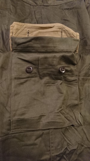 程好くテーパードしたシルエットは抜群のバランスです。素材はコットンサテンが使われ、生地表面の艶、高い耐久性も備えてます。