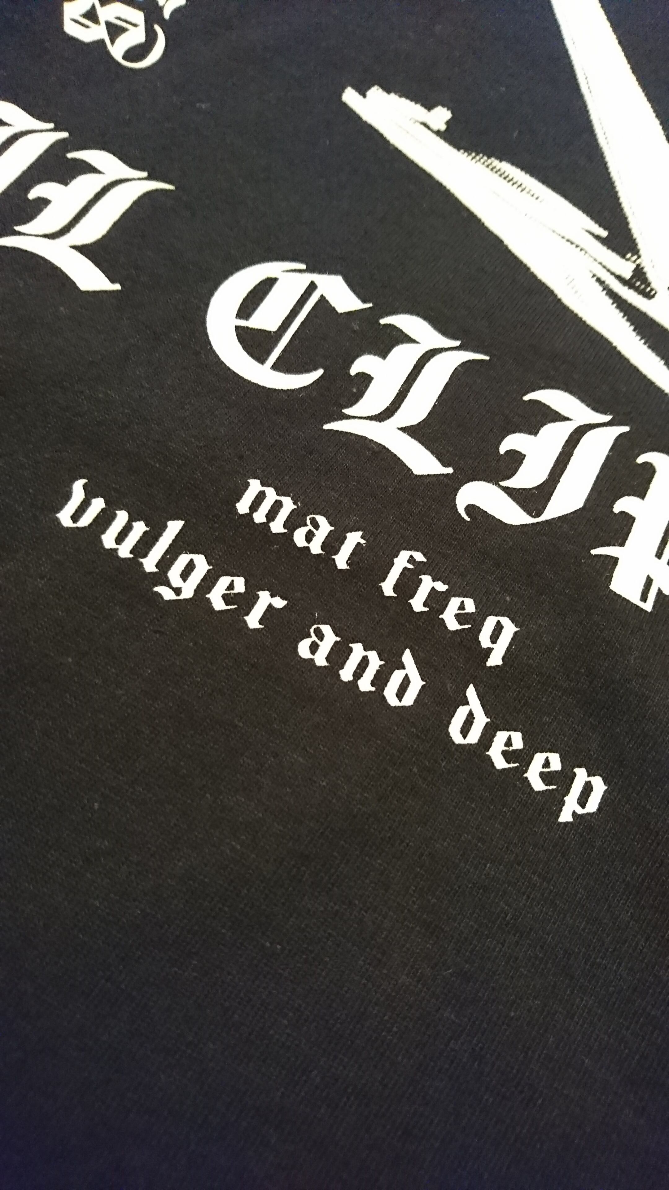 爪切り(NAIL CRIPPER)をアイコンにし、オールドイングリッシュと組み合わせvintageのモーターサイクルクラブの様なデザインにした男臭いプリント。
