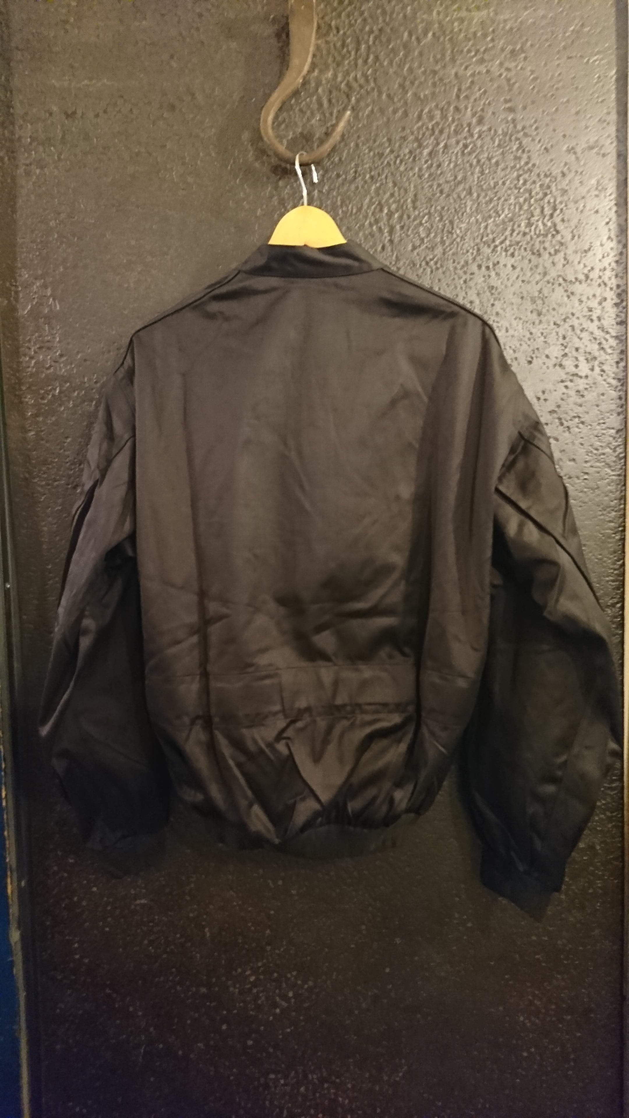 特殊な任務のウェアになる為、殆ど市場に出回る事がないジャケット。襟はスタンドカラーで袖と裾はリブ仕様。表にポケットは無く、内側の両胸部分にポケットがあります。腰には大きめの丸カン、ウエスト内側には金具付きのゴムベルトがついており絞る事が可能。ディテールも面白くファッション性の高いアイテムです。