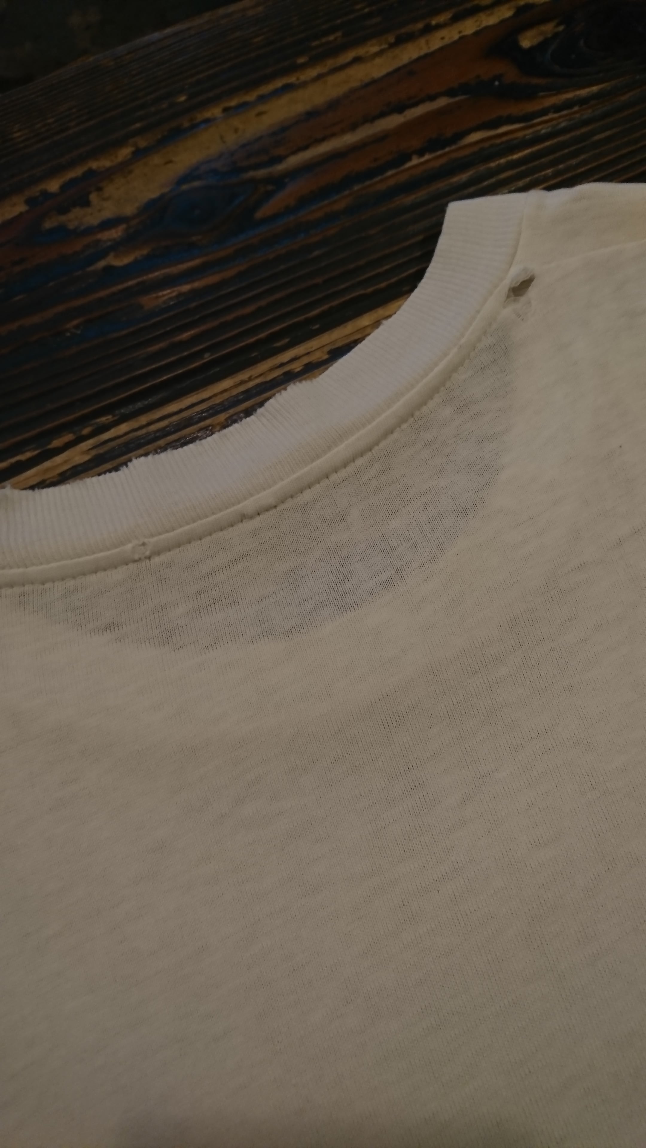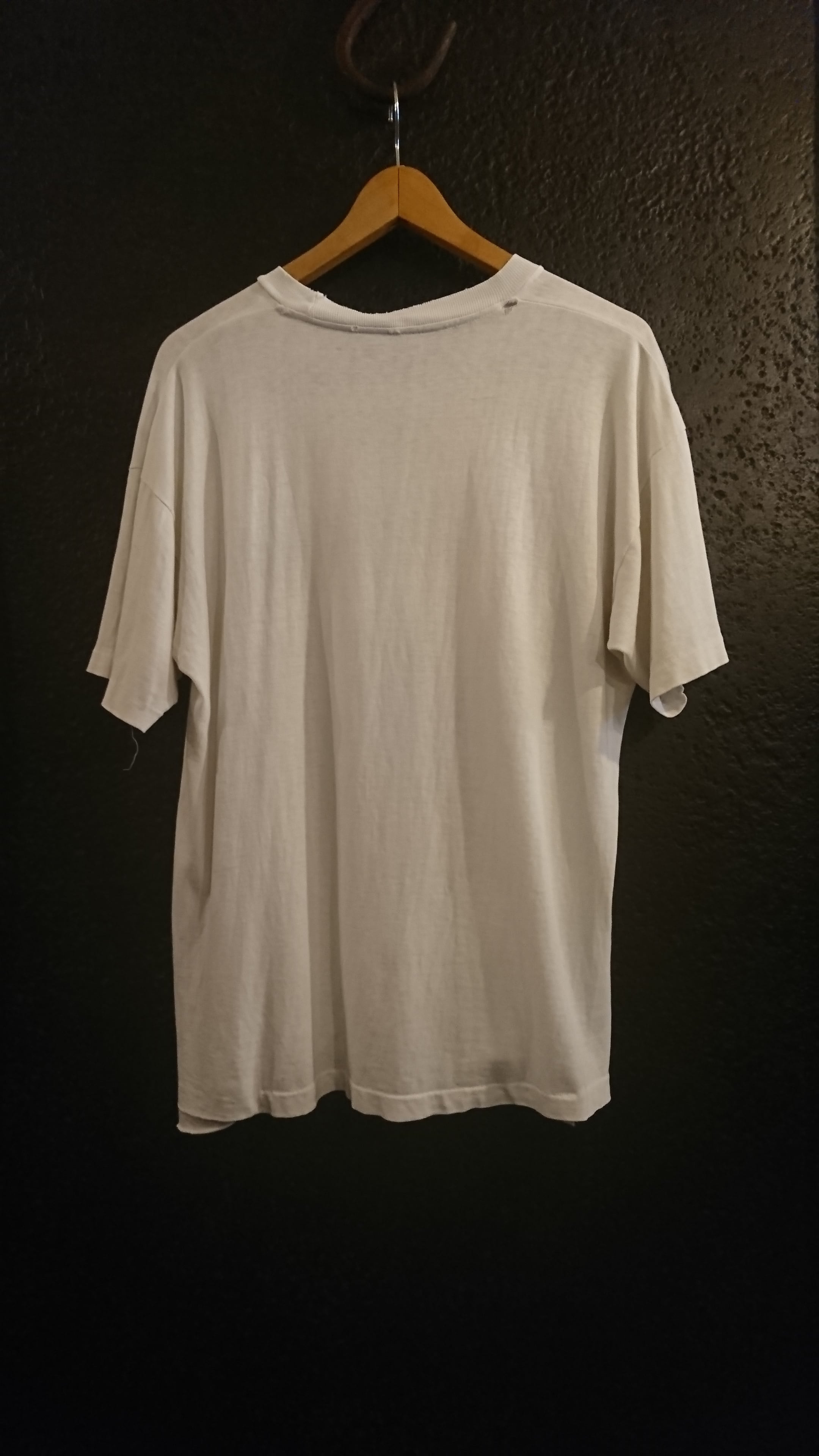 "Pure White"。そのアルバムのTシャツになります。着用感あって所々に傷、裾の縫製がとれてますが着用に問題はありません。やれた感じとプリントの割れ方、雰囲気も感じる1着。