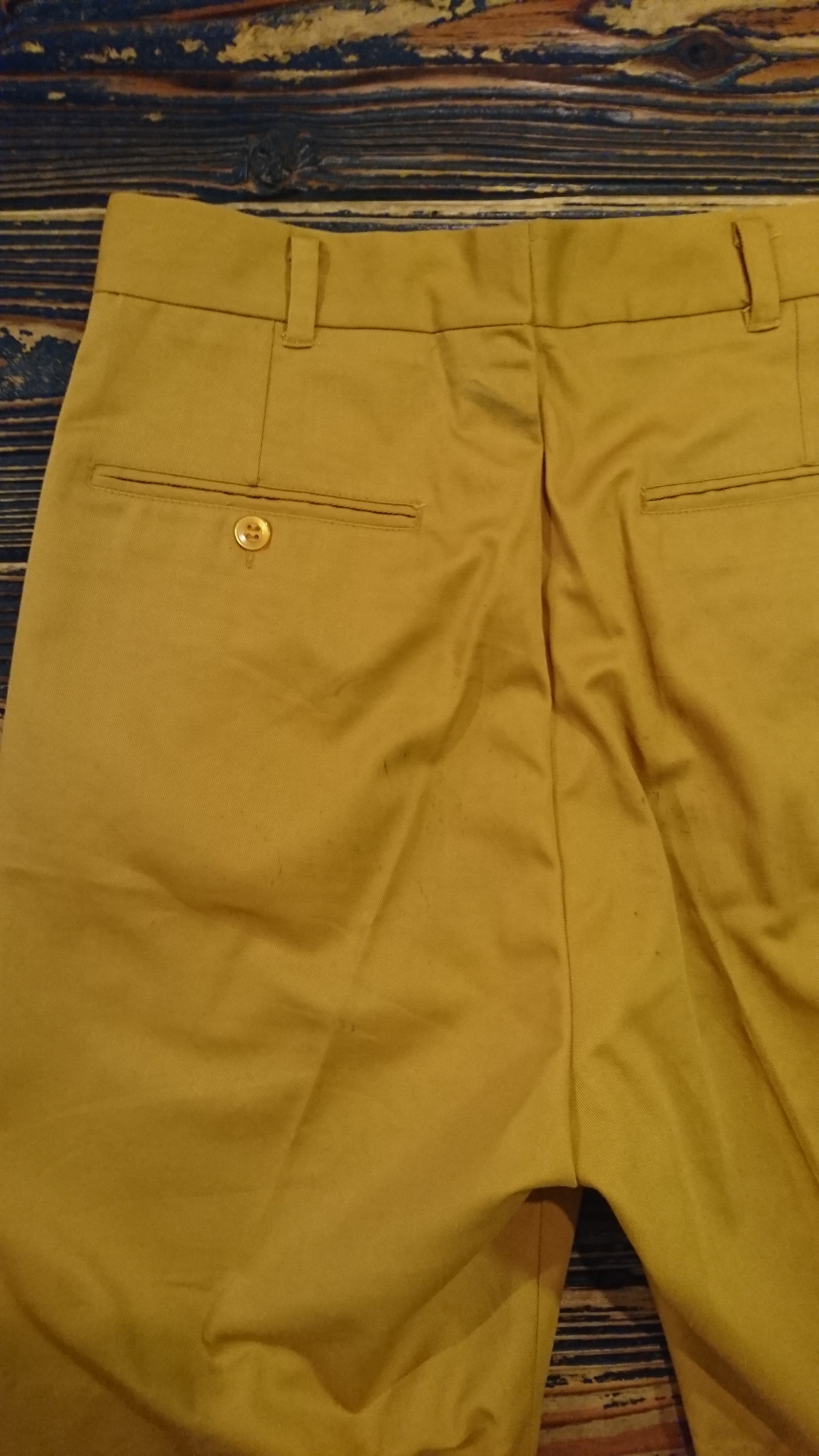 60〜70年代 KORATRON WALK SHORTSのデッドストックになります。PERMANENT PRESSでスラックスをショーツにしたようなスタイル。マスタードカラーがまた良いですよね。お尻にうっすらと汚れがあります。素材は77%POLYESTER 23%COTTON。MADE IN HONG KONG。