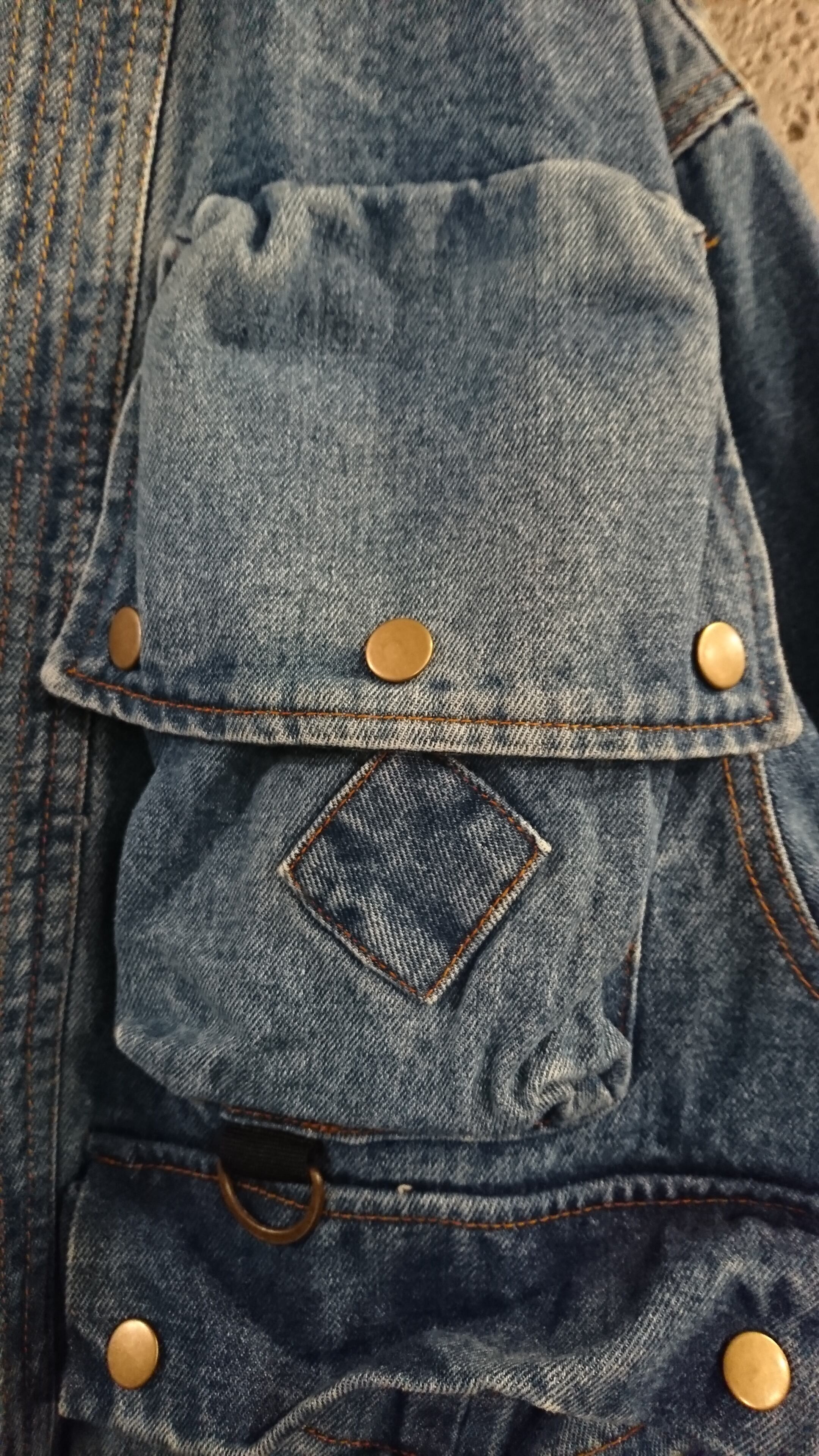 オススメ。着用感はありますが致命的な傷、汚れ等はありません。デザイン性あるデニムジャケットをお探しの方いかがでしょうか。MADE IN CHINA。