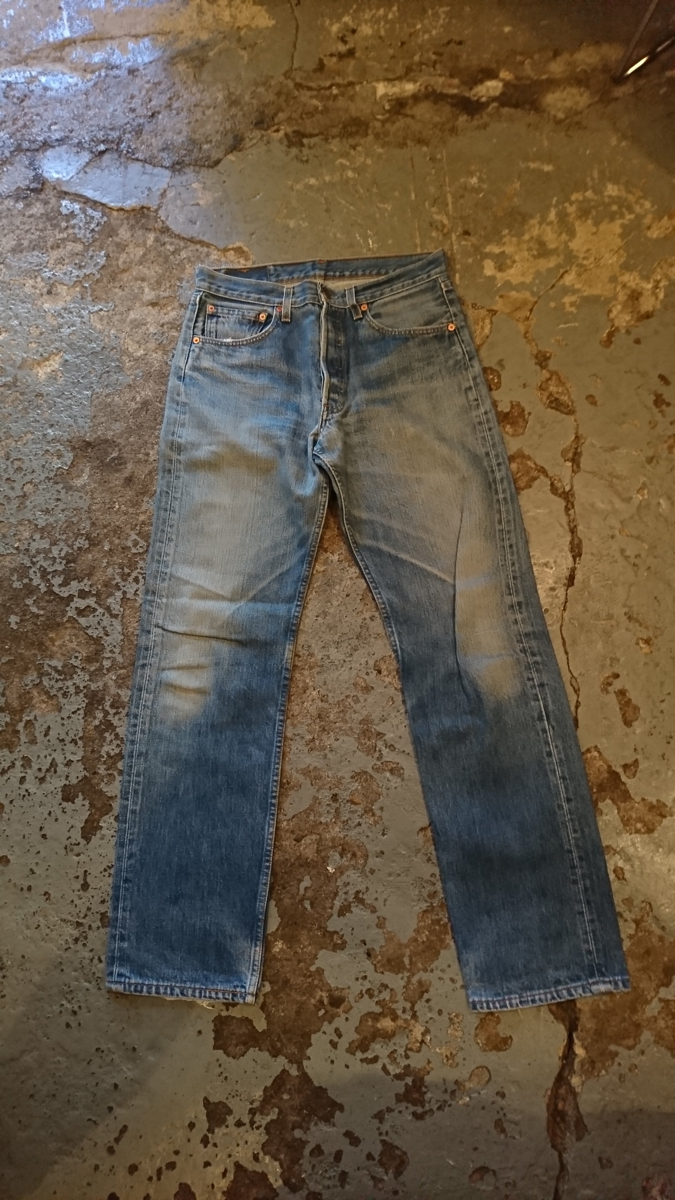 501になります。全体的に色落ちした雰囲気も良く個人的にオススメ。裾、フロントの左ポケットふちに傷がありますが着用に問題ありません。