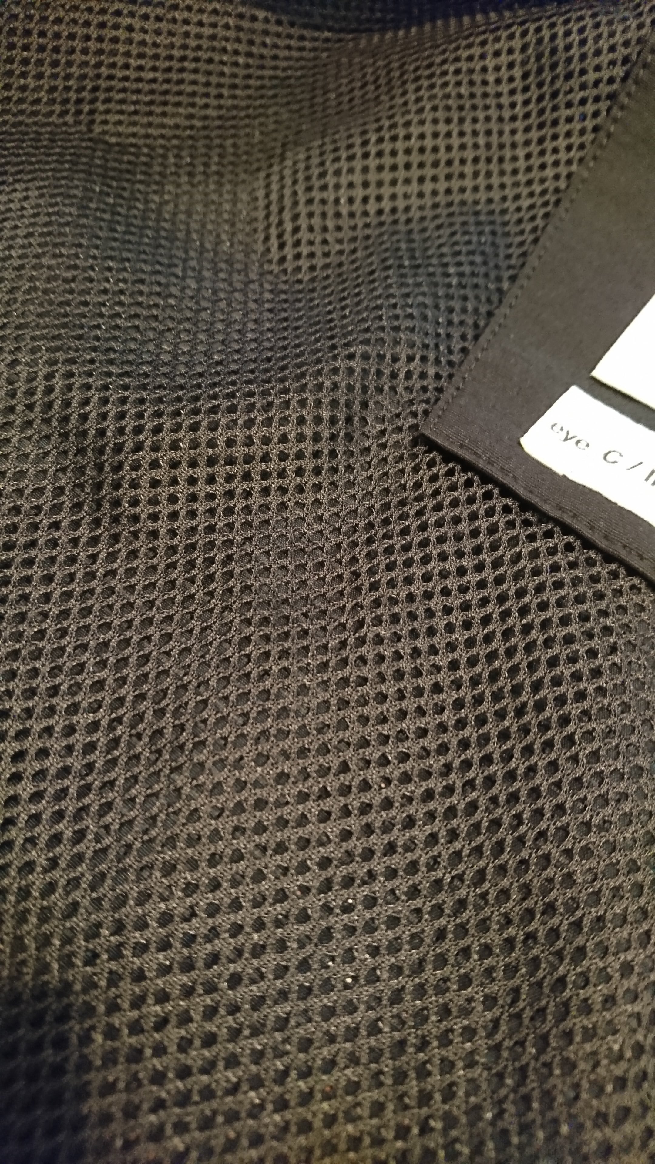 ベスト一枚で幾重にも見えるようなデザインに落とし込んだ。左右で分けた細かいものと長物を区別して使えるポケットとフラップを開くように使用するハンドポケットがある。山遊びの基本、前面に風を前から受けるための防風生地、体に溜まった熱を放出するための背面のメッシュを使用した。シワ感の強い撥水綿ナイロンを使用。eye_Cとのコラボ企画で黒がアジア限定、グレーはヨーロッパ限定カラーになります。