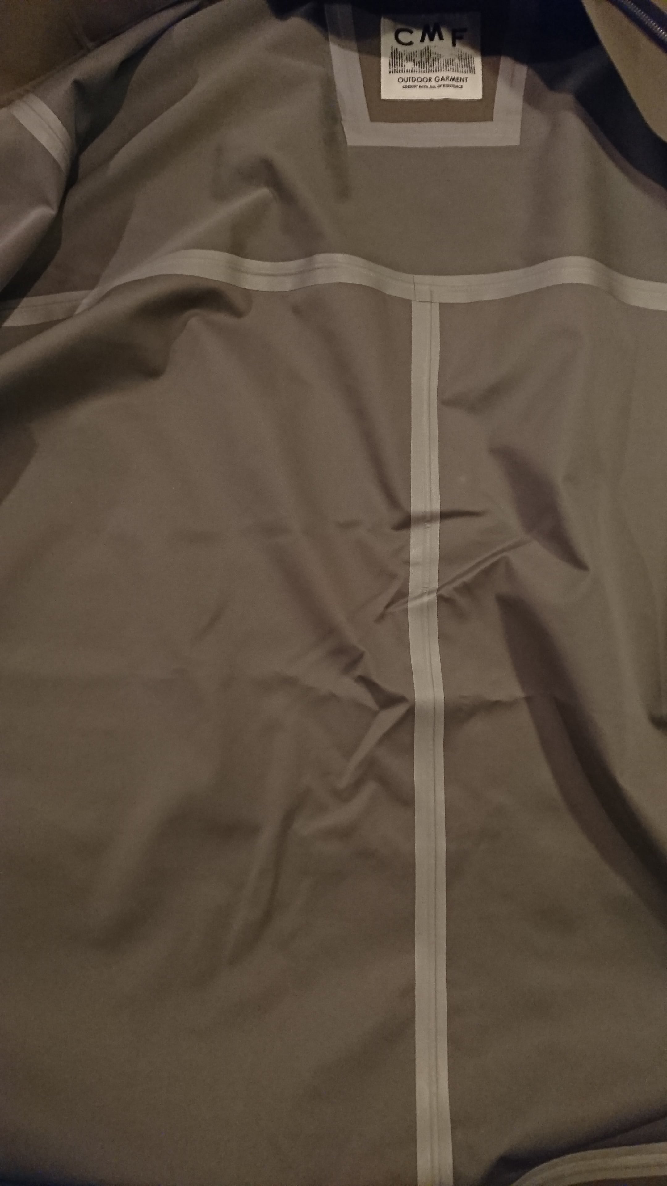 いろいろな洋服の上から羽織れるようにオーバーサイズで製作。和装を着た粋なおじさんが袖口から小銭を出すように、この羽織シェルも袖口から