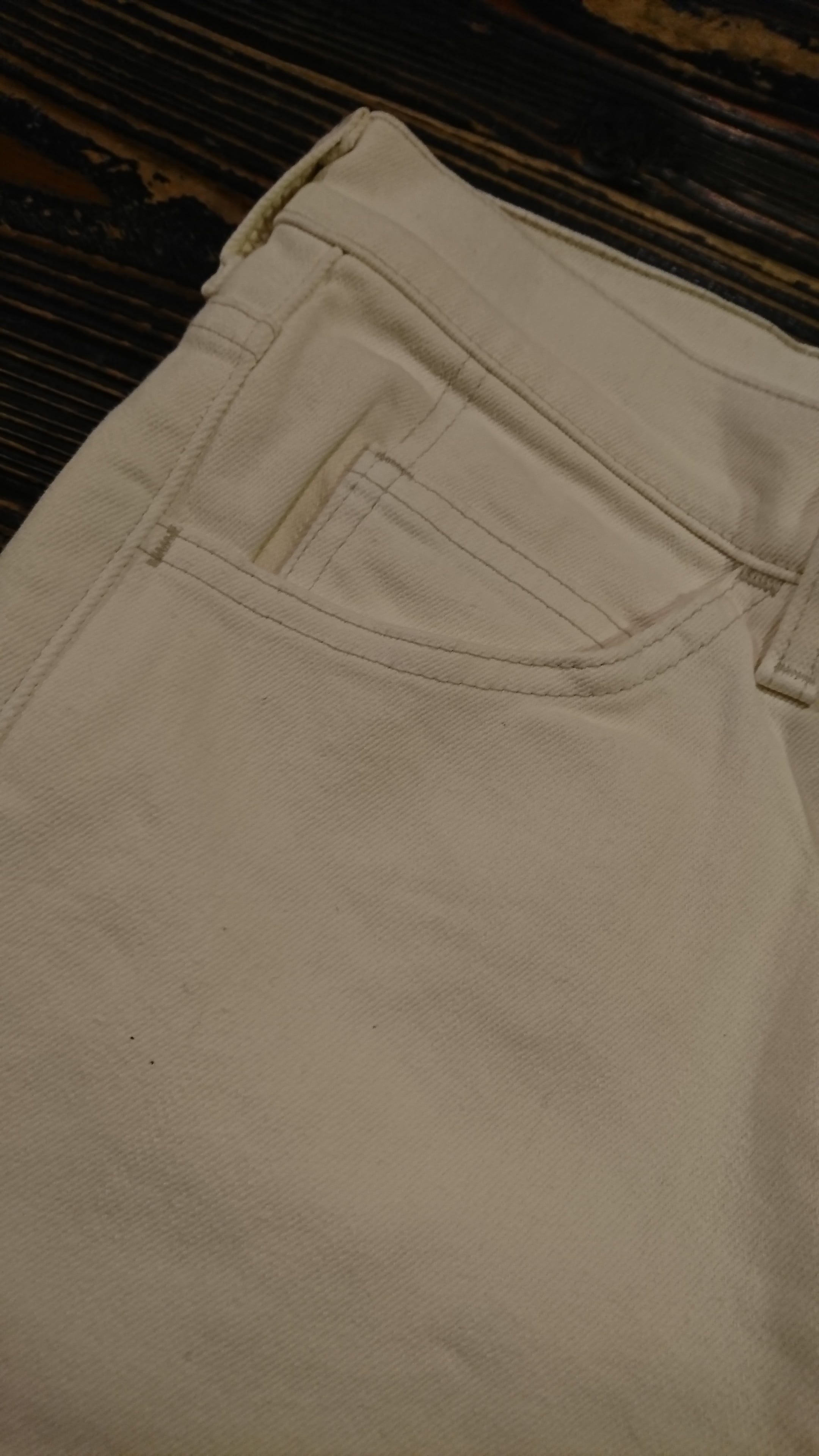 その他汚れ等ほとんどなくコンディション良い一本です。単体で履くのも格好良いのは勿論、先に紹介した70505ホワイトストレッチとセットアップで合わせるのも男前です。ホワイトカラーは今回初入荷になります。気になった方いかがでしょうか。