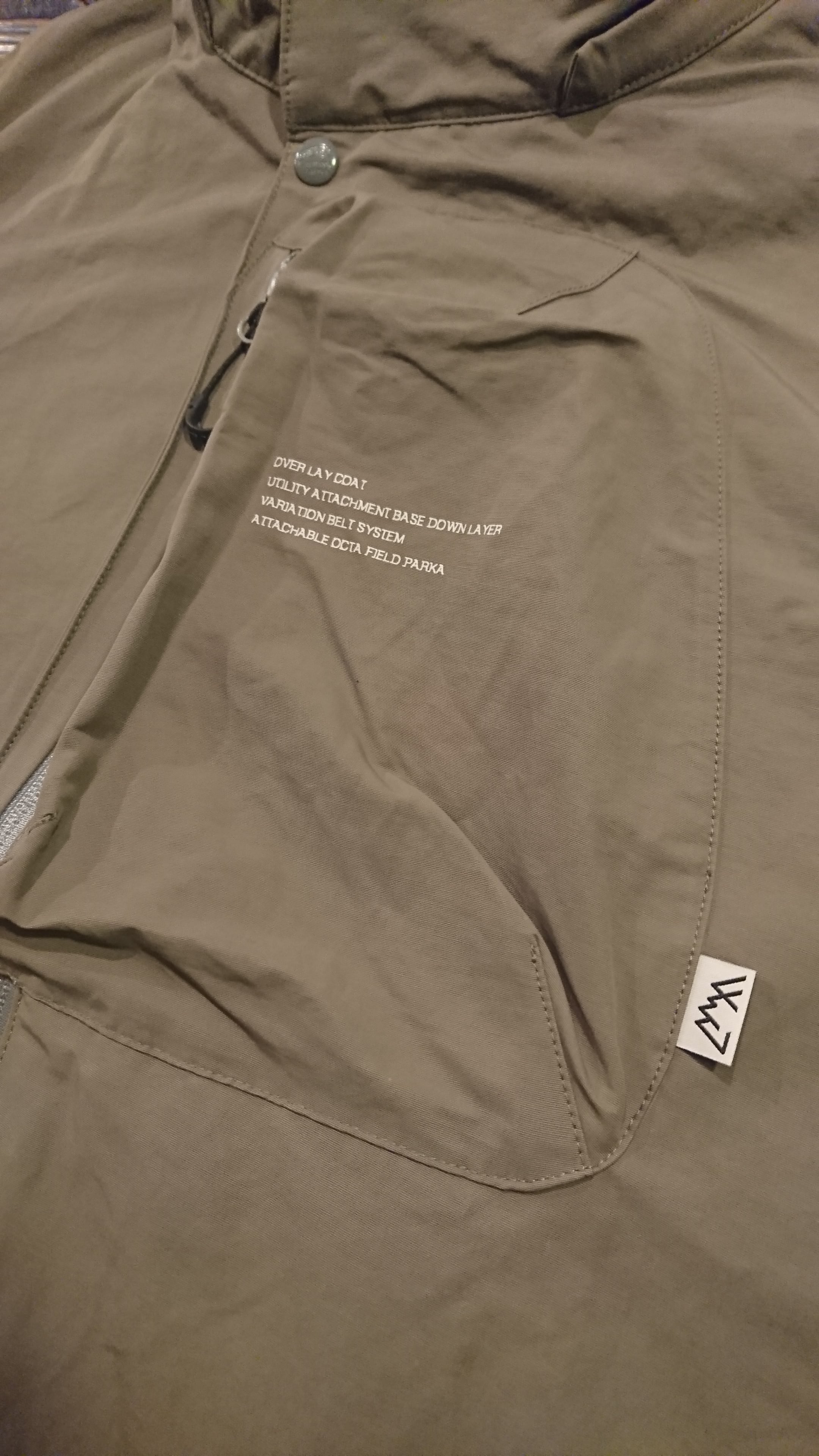 胸にあるサコッシュポケットが目を引くオーバーコートを製作。前立てのパターンとジップの垂らし方を工夫した。脇ポケットの上にオーバーコートによくある中に着ているジャケットのポケットに直接アクセスできるジップを装着。ライニングにダウンコートが装着しやすいようになっている。シワ感の強い撥水綿ナイロンを使用。