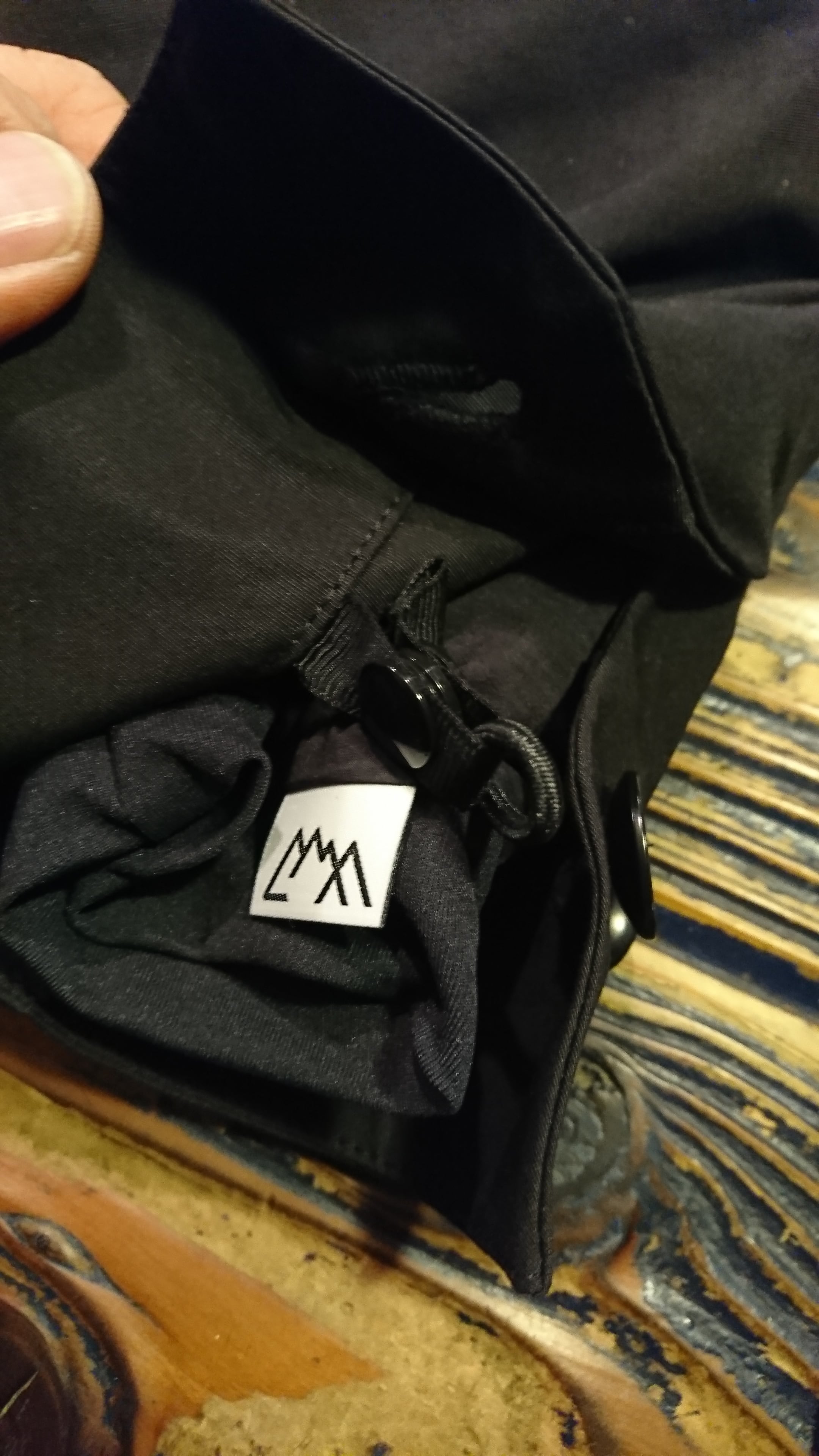 20Dのナイロンを使用。裏地は撥水加工が施された15Dリップナイロンを配した。とても軽く仕上げてある。袖口に吸水速乾・消臭に優れたストレッチ生地を使用。脇の下はあえて穴を開けてあり、シェルに装着してもバリエーションベルト用のストラップが出せるように工夫してある。