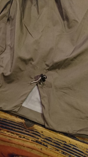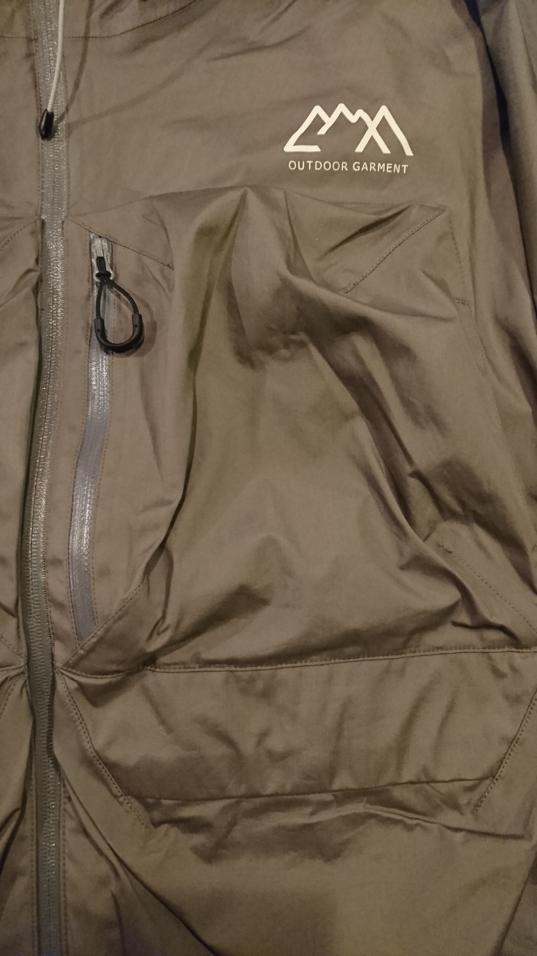 COEXIST 3レイヤー耐水20000透湿30000。フルシーム。フードと袖に別生地のシルナイロンをレイヤードとして構成した。フードは内側で束ねてスタンドカラーになるようにギミックを入れた。前面の4ポケットがハンドポケットとしても使えるようにしてある。背面のフラップ部分までポケットとして使用できるようになっており大きいポケットはパッカブルポケットとしても使用可能。プリントは全てリフレクタープリント。