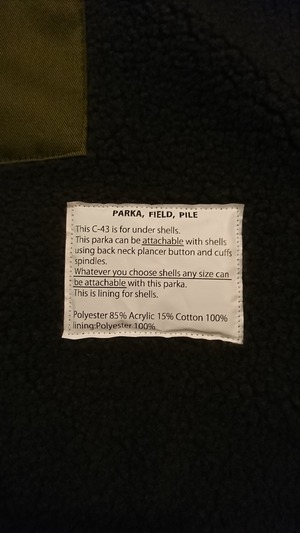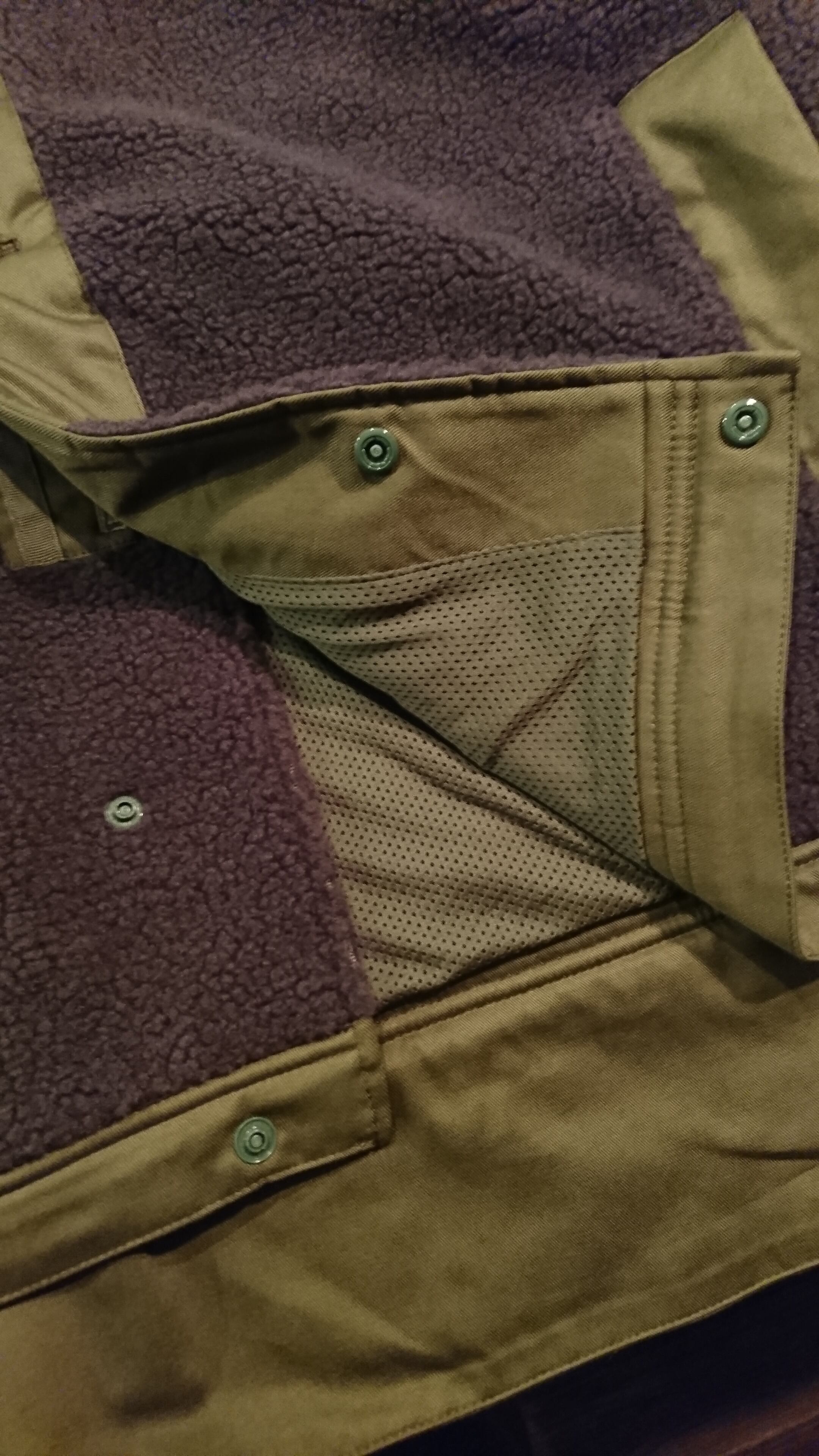 WW2 U.S.ARMY M-43 FIELD PILE LINERをモチーフにフルオープンのパイルジャケットを製作。あえてパイル生地に綿100で構成した。フード内とフード口にOCTAを使用。アウターとしてもインナー