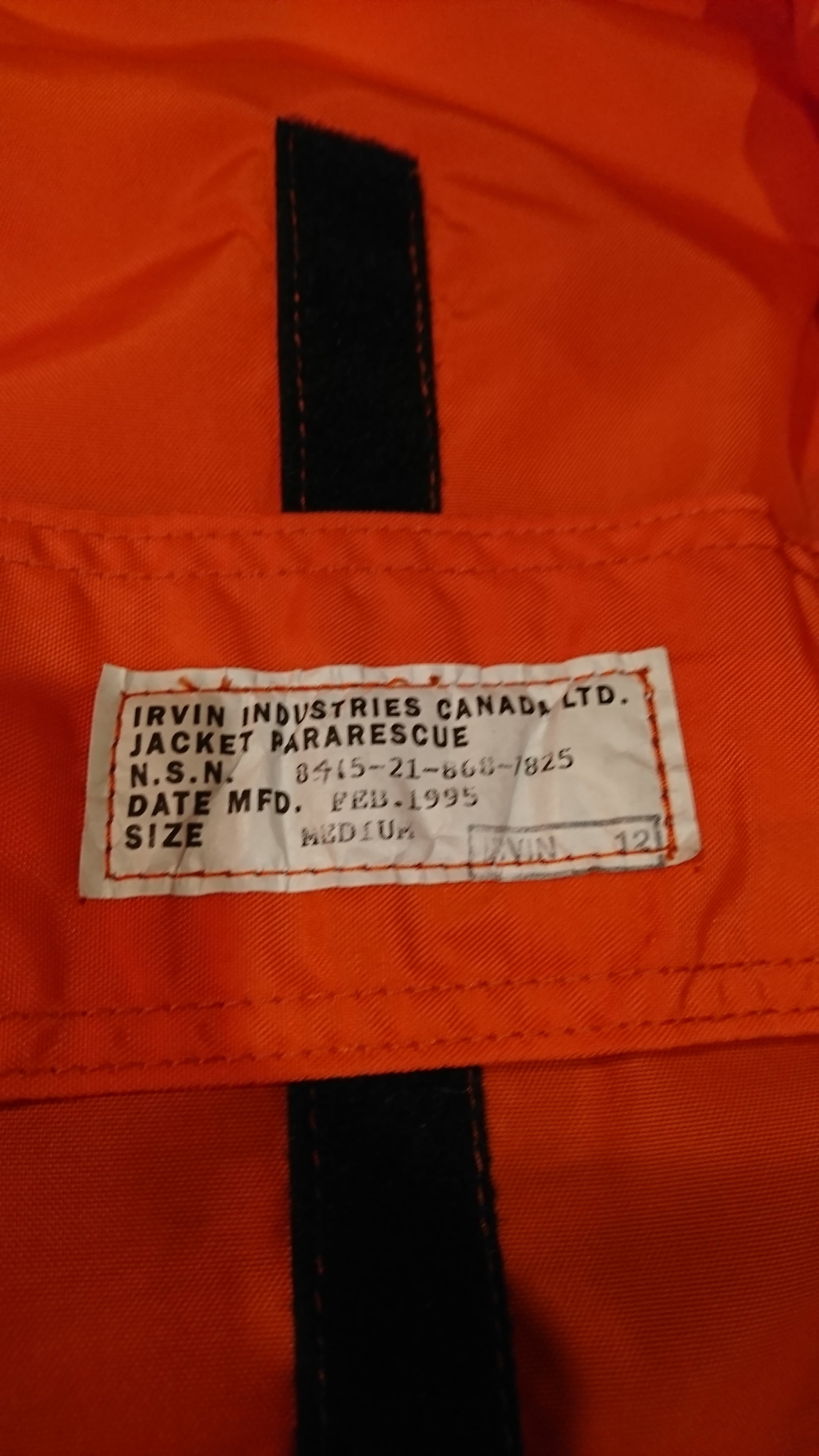 1995 IRVIN INDUSTRIES CANADA LTD. JACKET PARARESCUE