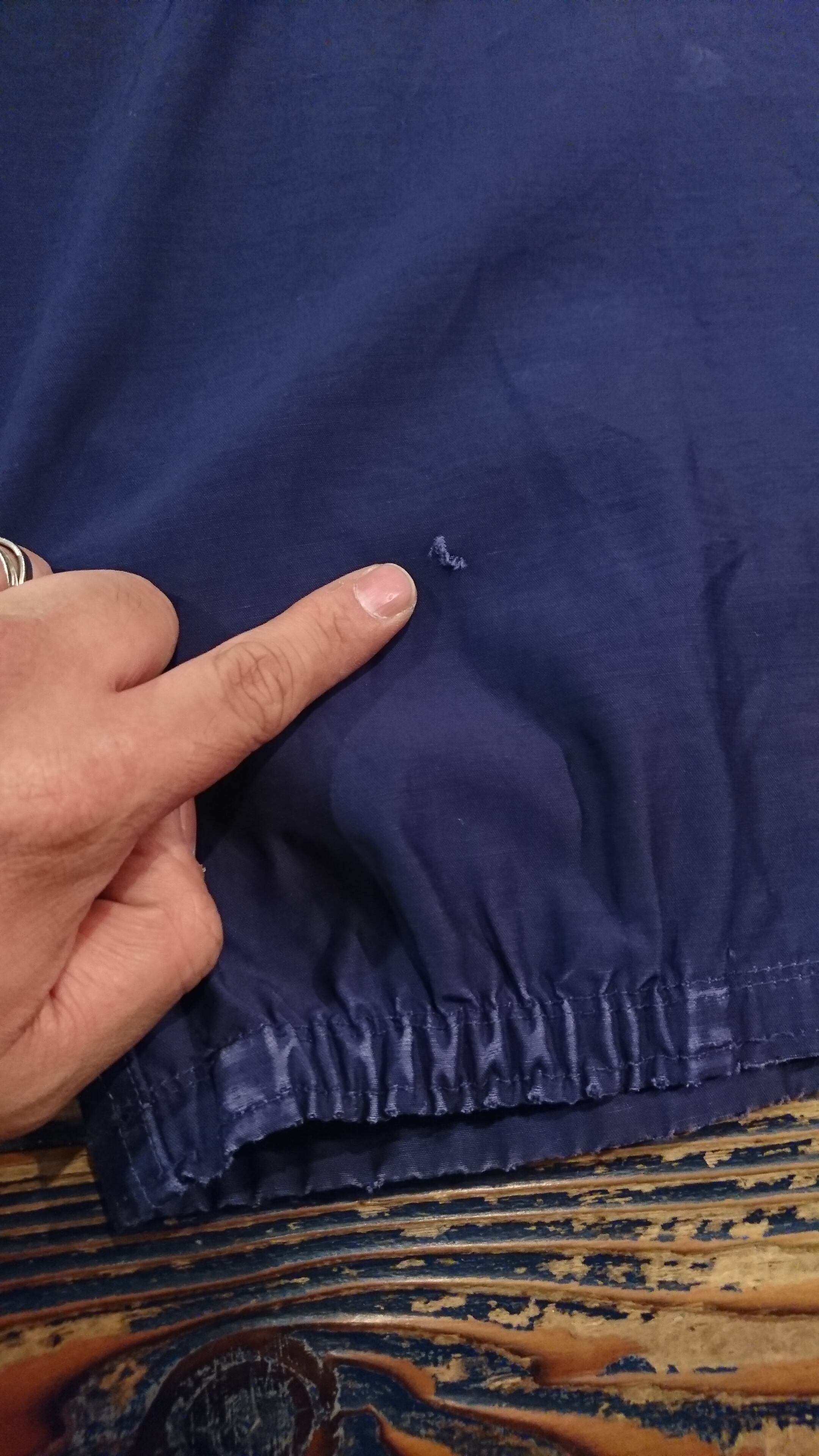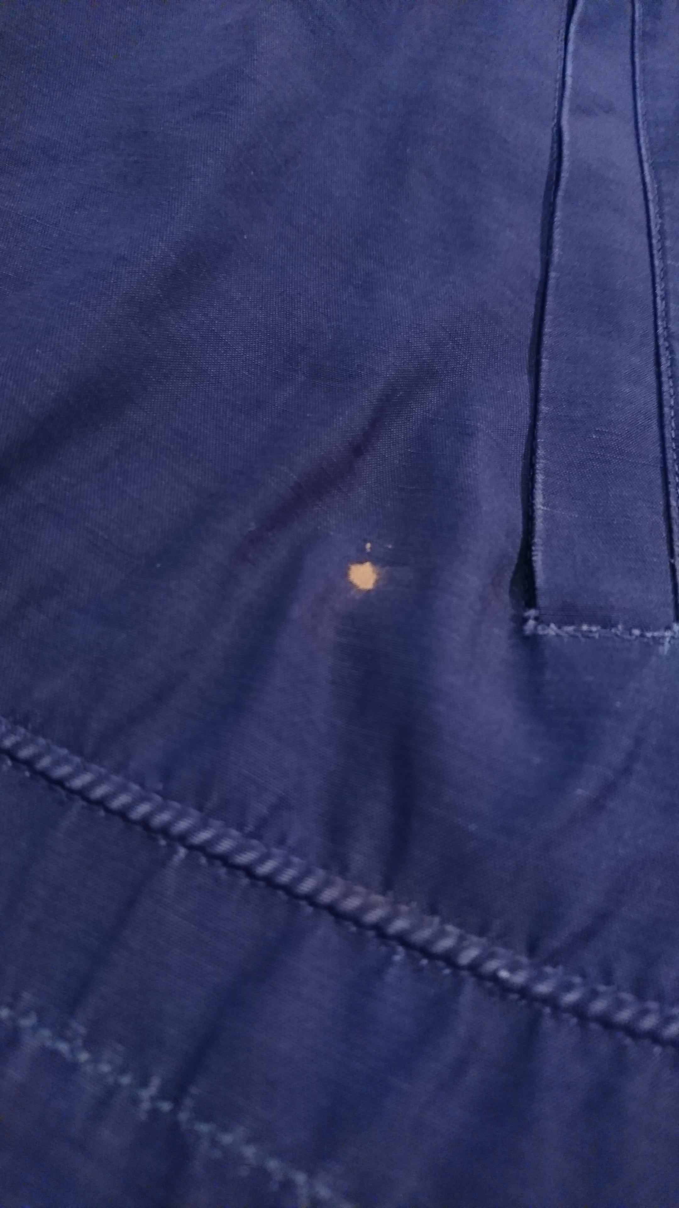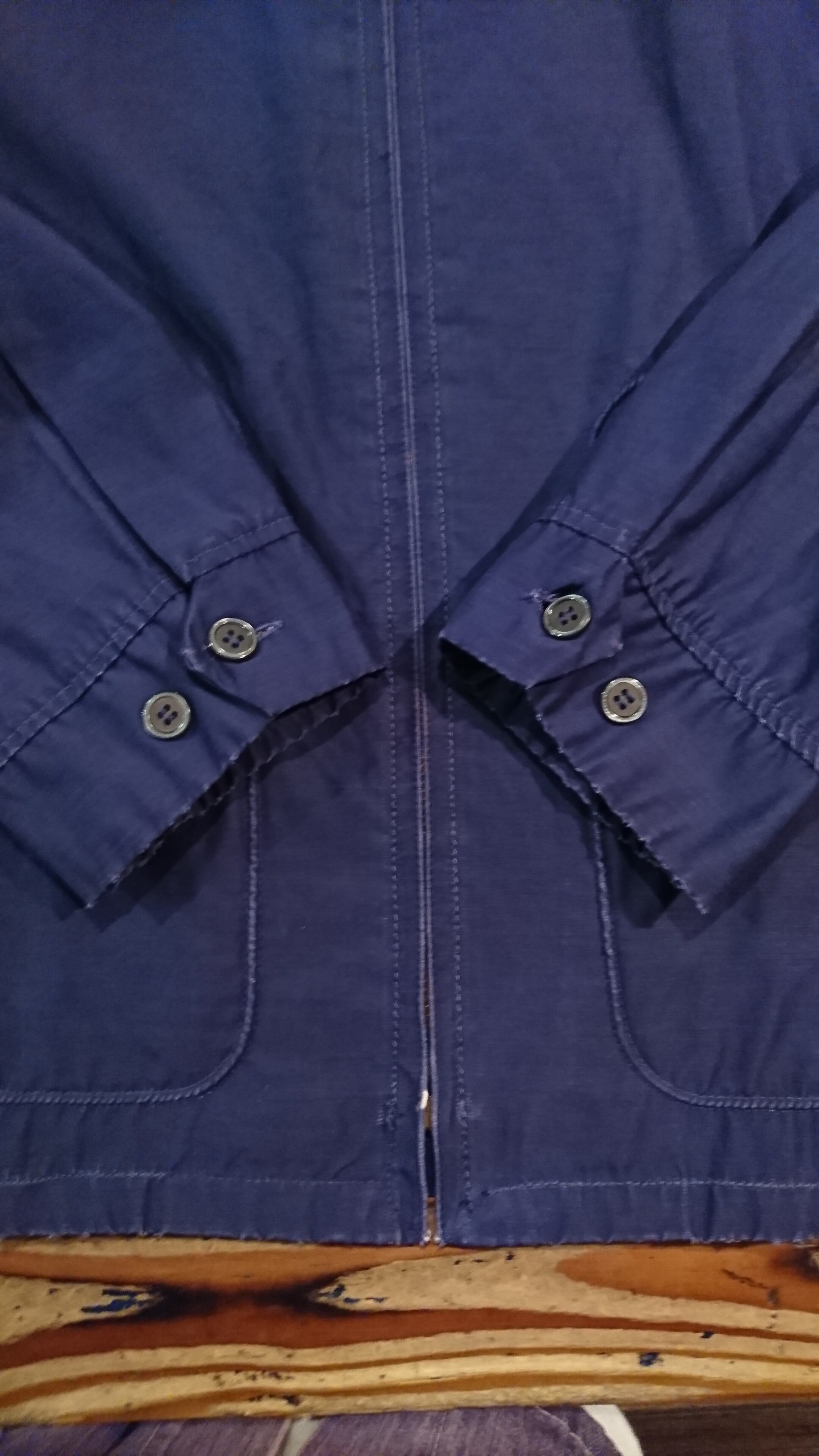 全体的に少し色褪せたネイビー。両袖口、裾に