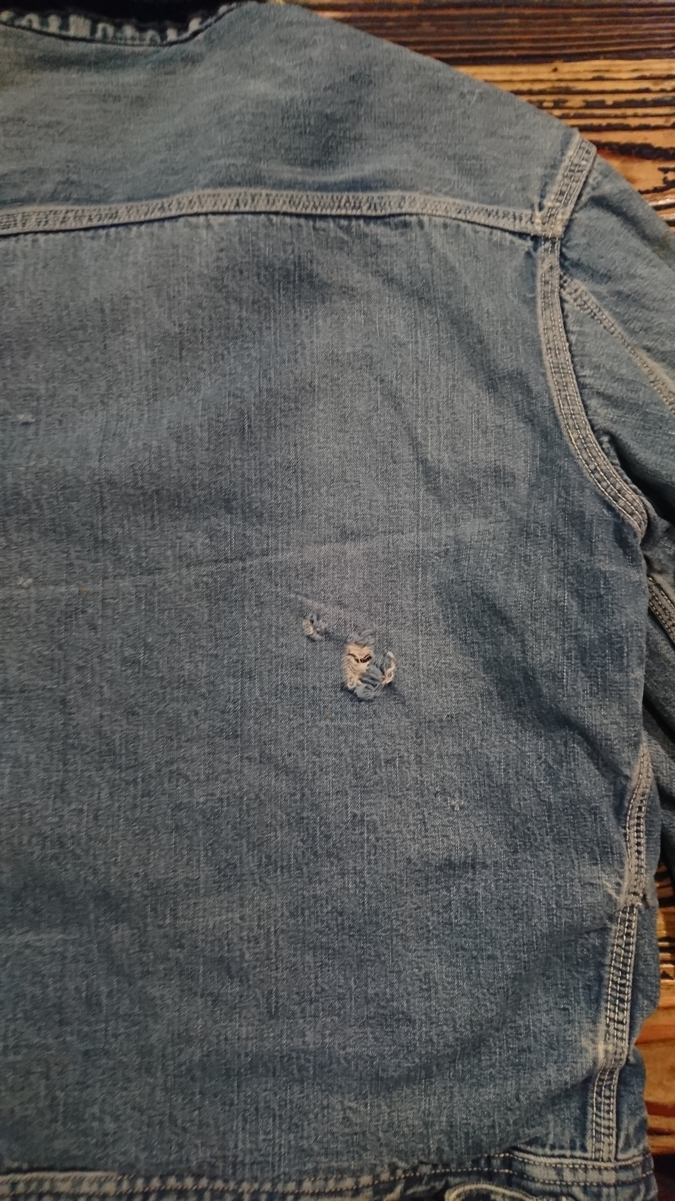全体的に色落ちし、腕、背中等所々傷も