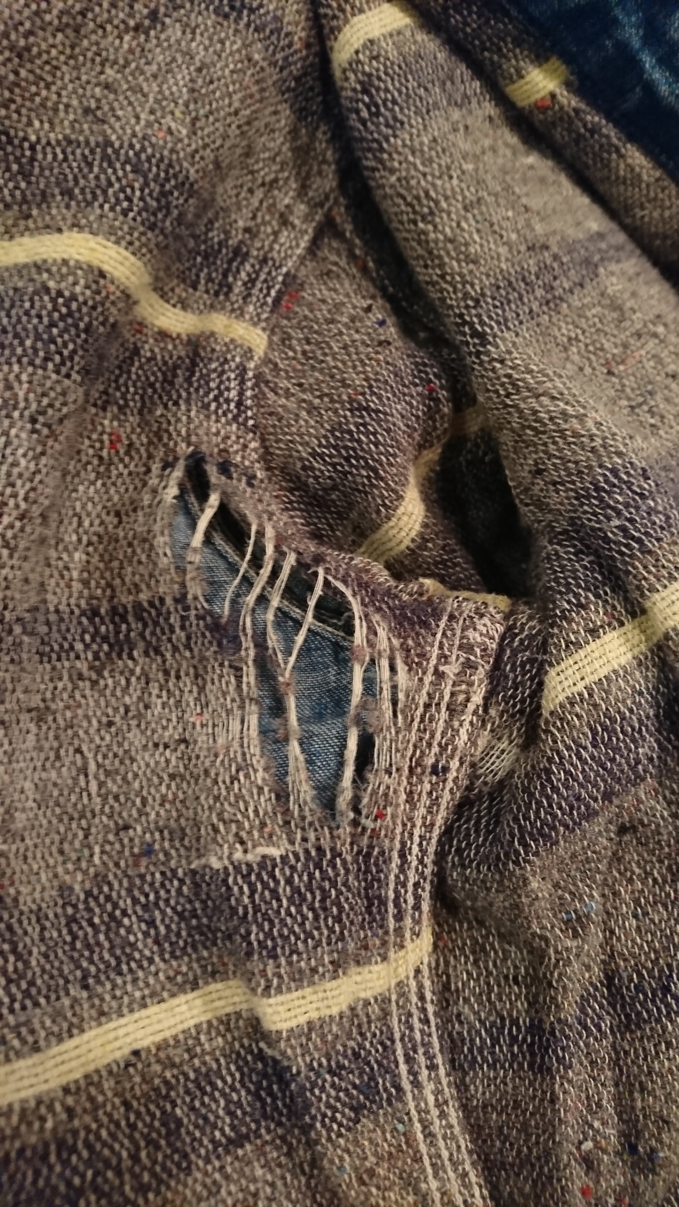 右袖のボタンが一個欠損、内側のブランケットの
