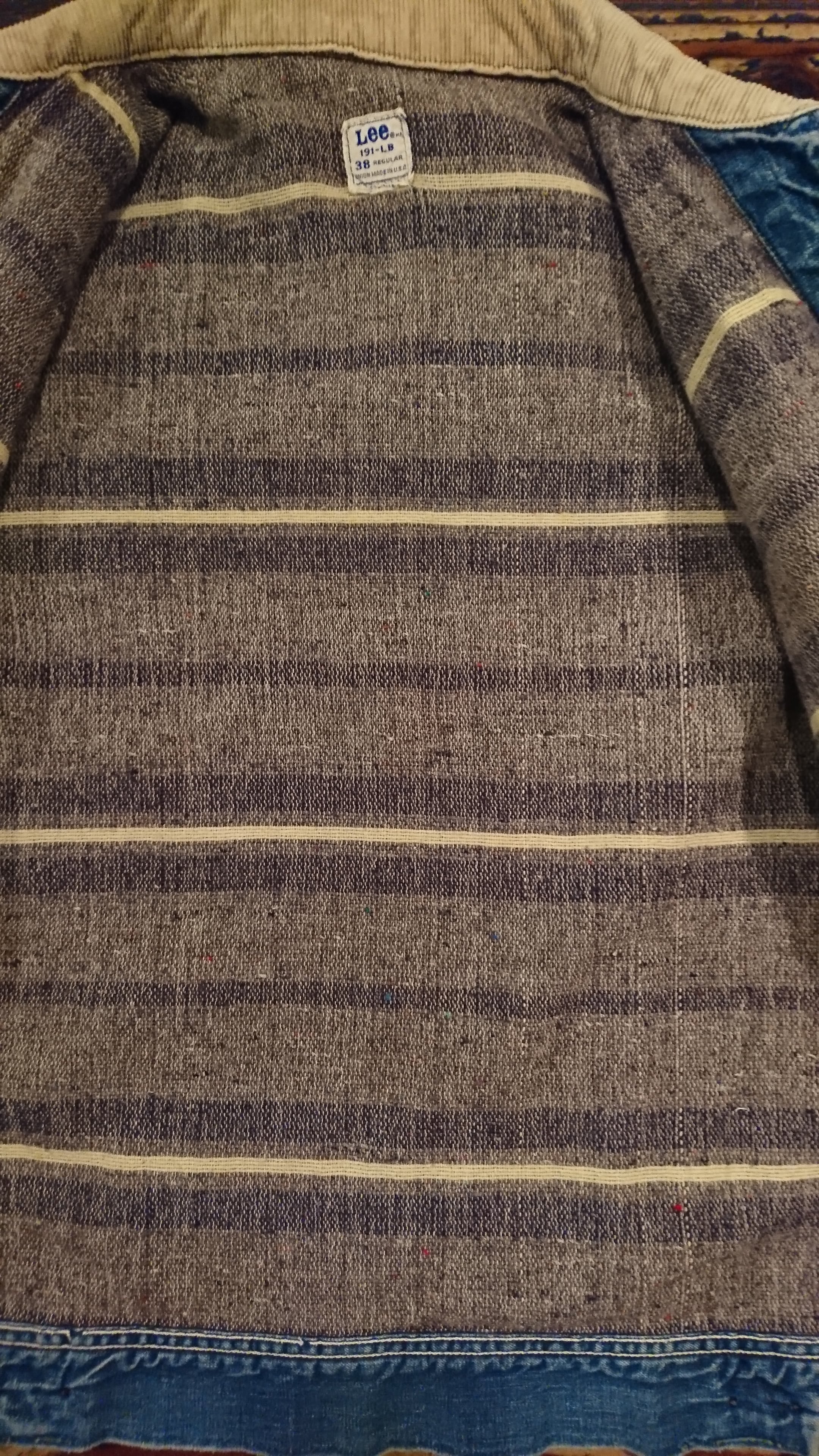 Lee 91-Bのデザインで襟はコーデュロイ、