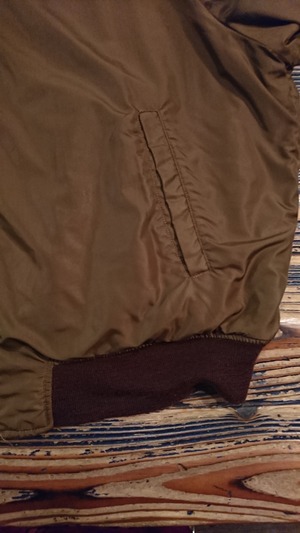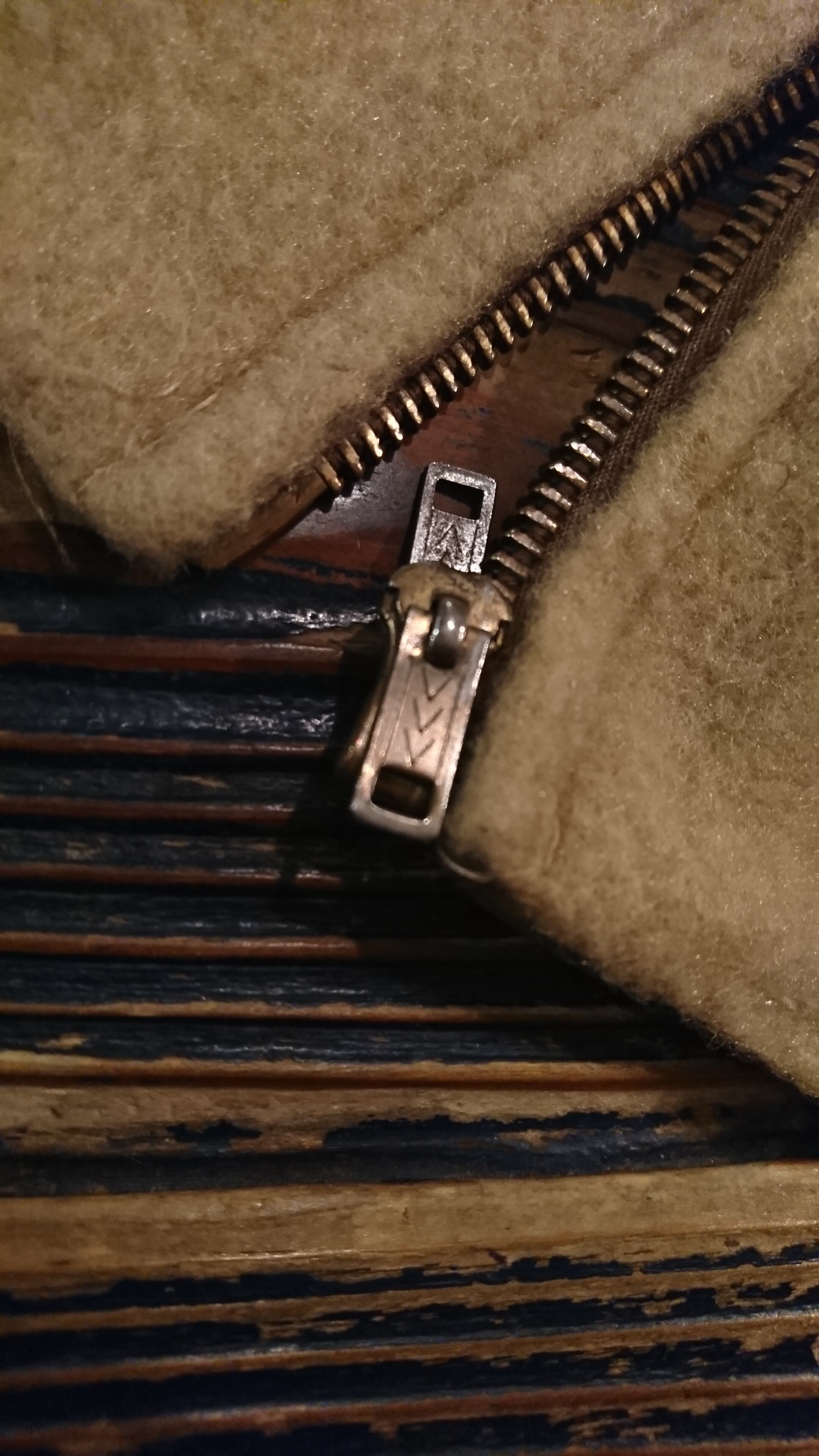 裏面はフリース使用。このタイプは裏面がボーダー柄が多いですが、今回紹介するのは無地タイプになります。フロントのジッパーが交換されていますがその他のコンディションは良いかと。