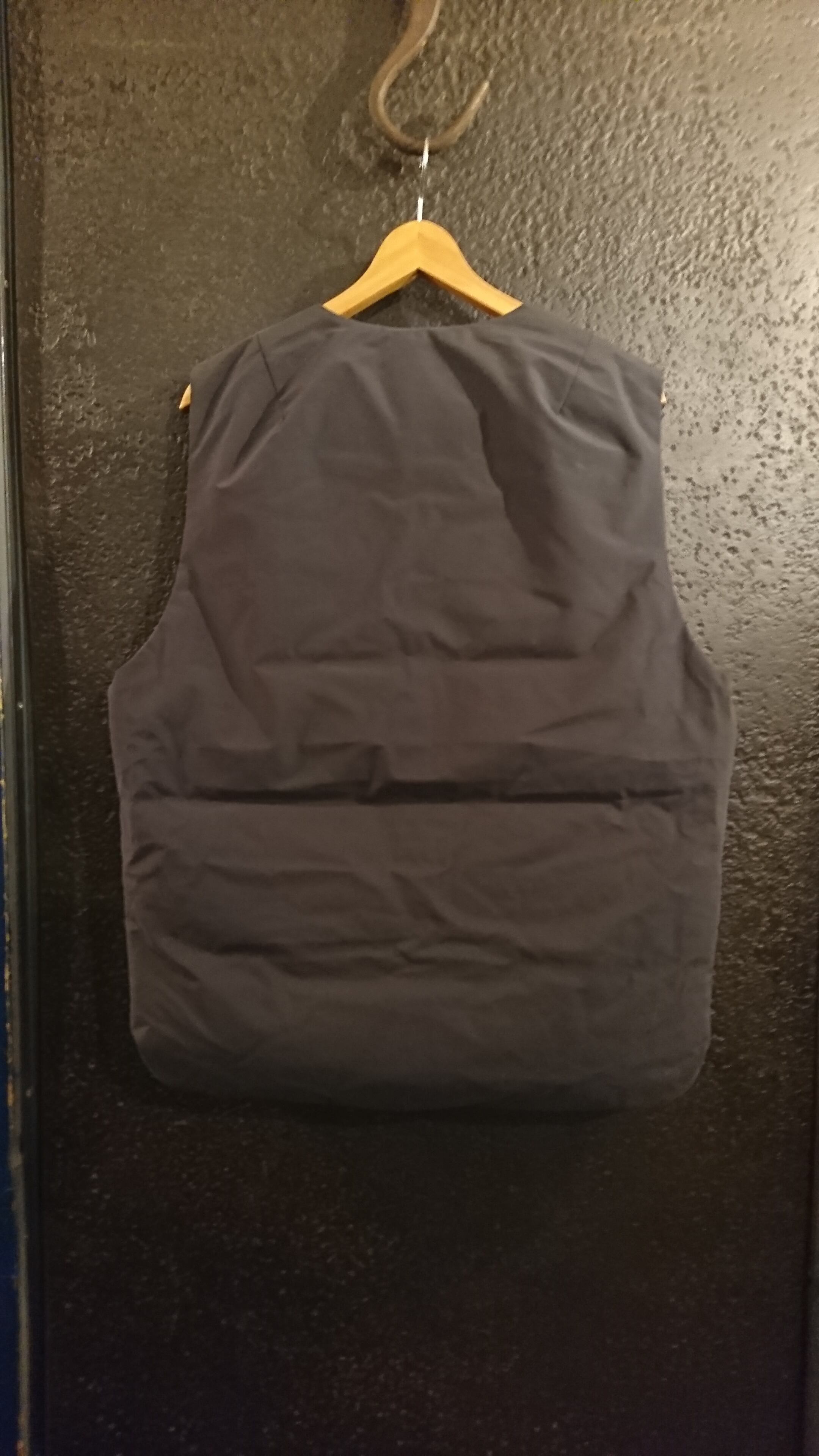 70sのデニムやダックのワークベストをアップデートし生地を前回のダウンジャケットに使用したWASEWオリジナル3レイヤー生地を表地に、裏地には通気性の良いリップストップの超軽量ナイロンを使用しました。