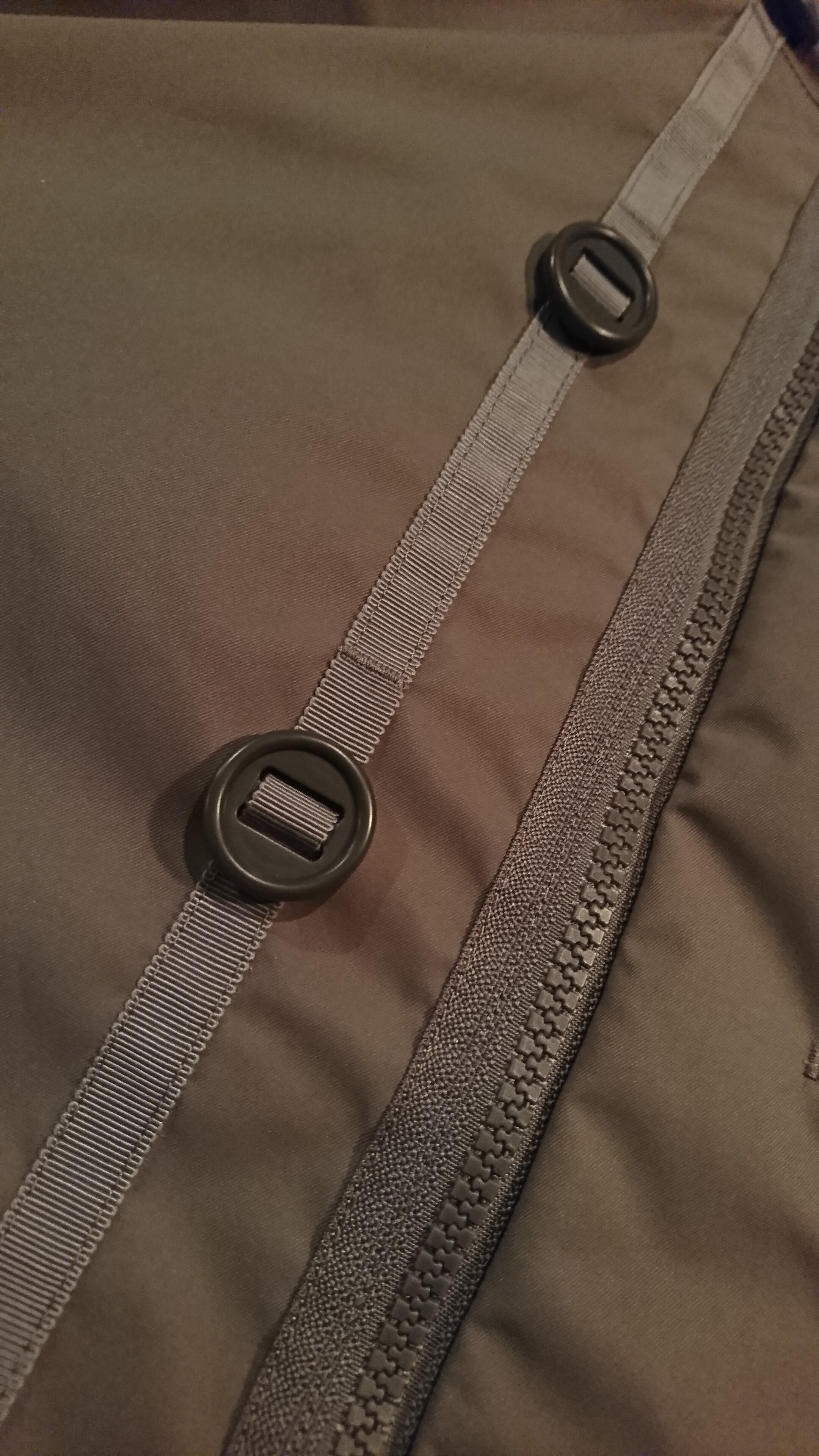 耐水10000透湿10000の3レイヤーで構成した。脇ポケットを大きくし、さらにハンドポケットを配置した。FIDLOCKバックルも形を変えてさらに開閉しやすくしてあり、フードのクロスベルトをやめ、高さと幅をワンアクションで調節できるクイックシステムを採用した。左フラップにはモデル名とともにダウンの種類と温暖化で縮小した