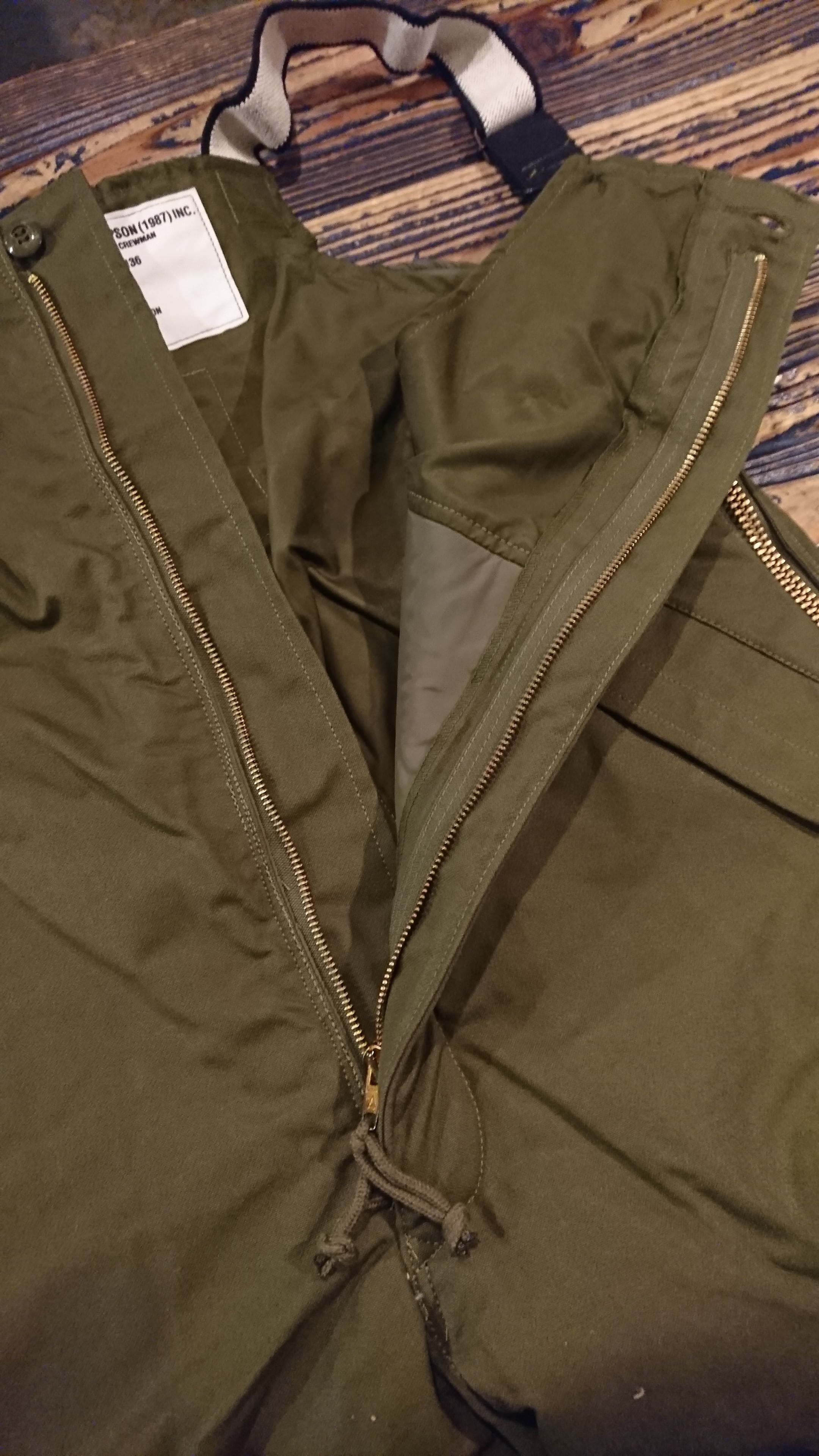 コットン×ナイロンを使用した撥水性に優れた素材で、中綿にはウールを100%使用した防寒性のあるヘビーウェイトオーバーオールです。両サイドにベルクロ開閉式のハンドポケット、サイドのカーゴポケットもベルクロで開閉する仕様です。フロント、サイド、裾部分全てが金属製のダブルジッパー仕様で汎用性の高いデザインに。