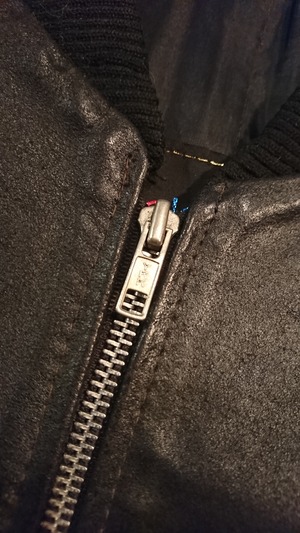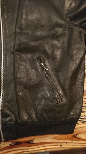 LA ROCKAのレザージャケット。今回紹介するのは首もと、袖口、裾がリブ付になったタイプ。