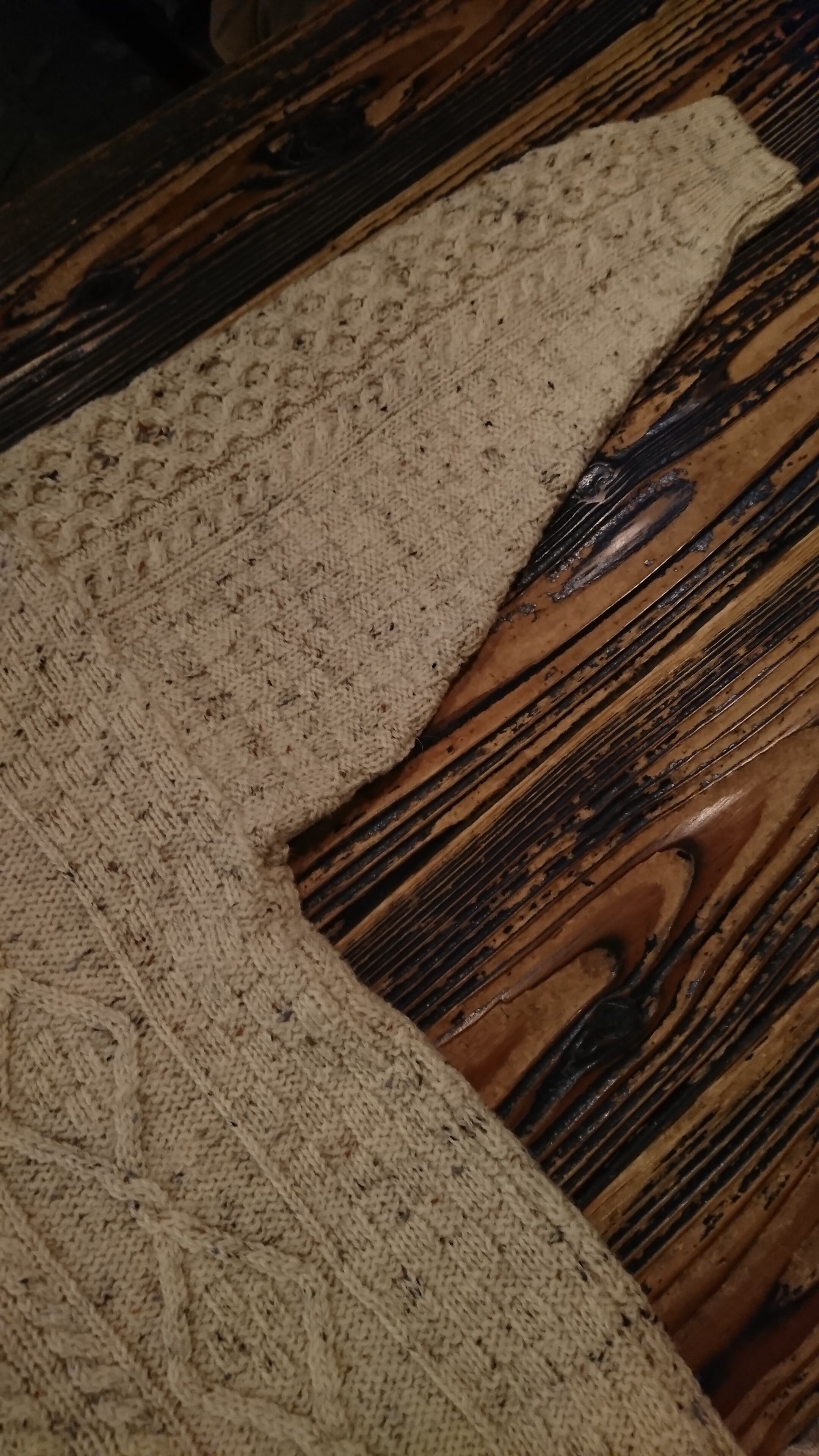 ベージュカラーでネップ地のアランセーター。