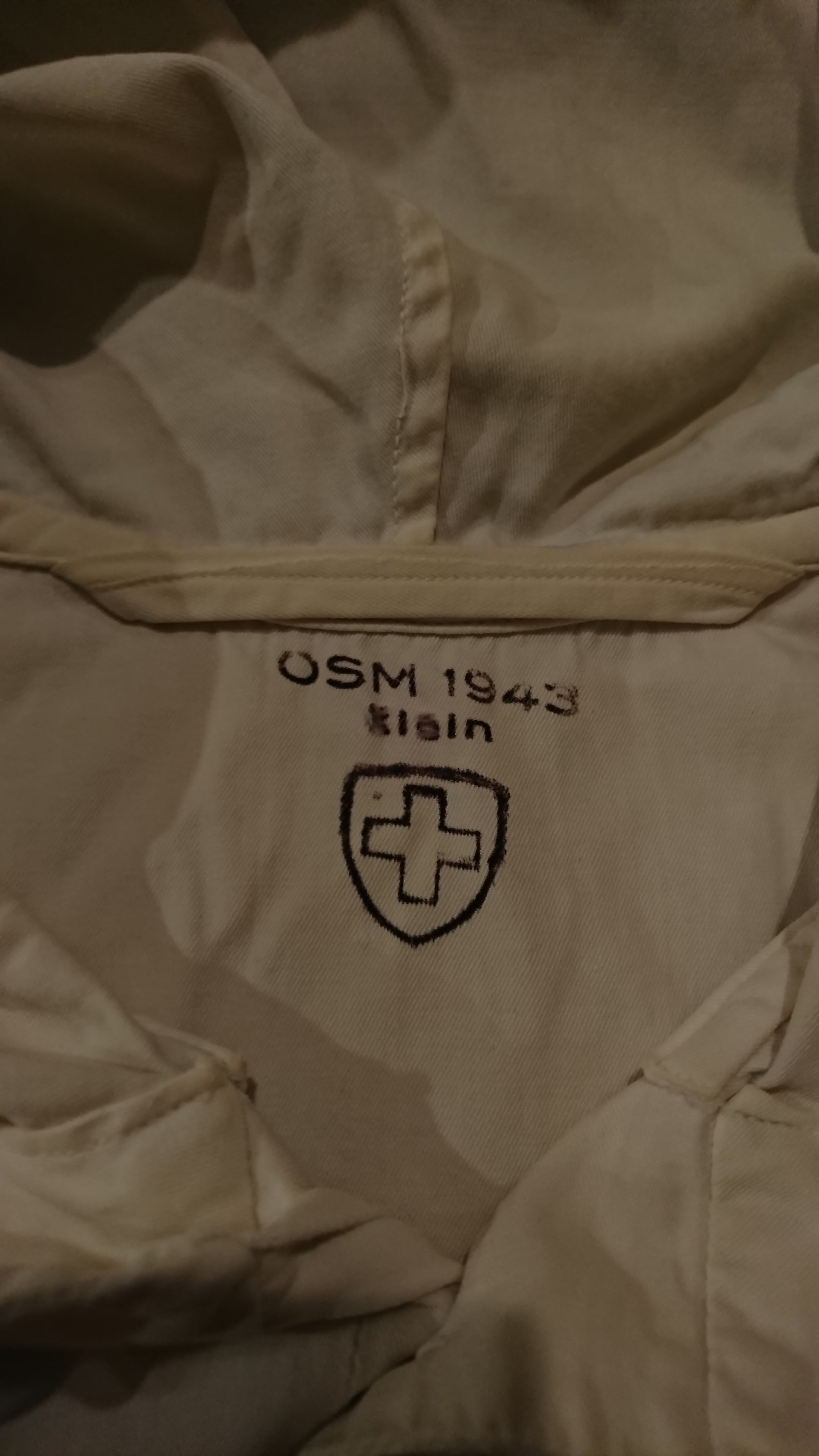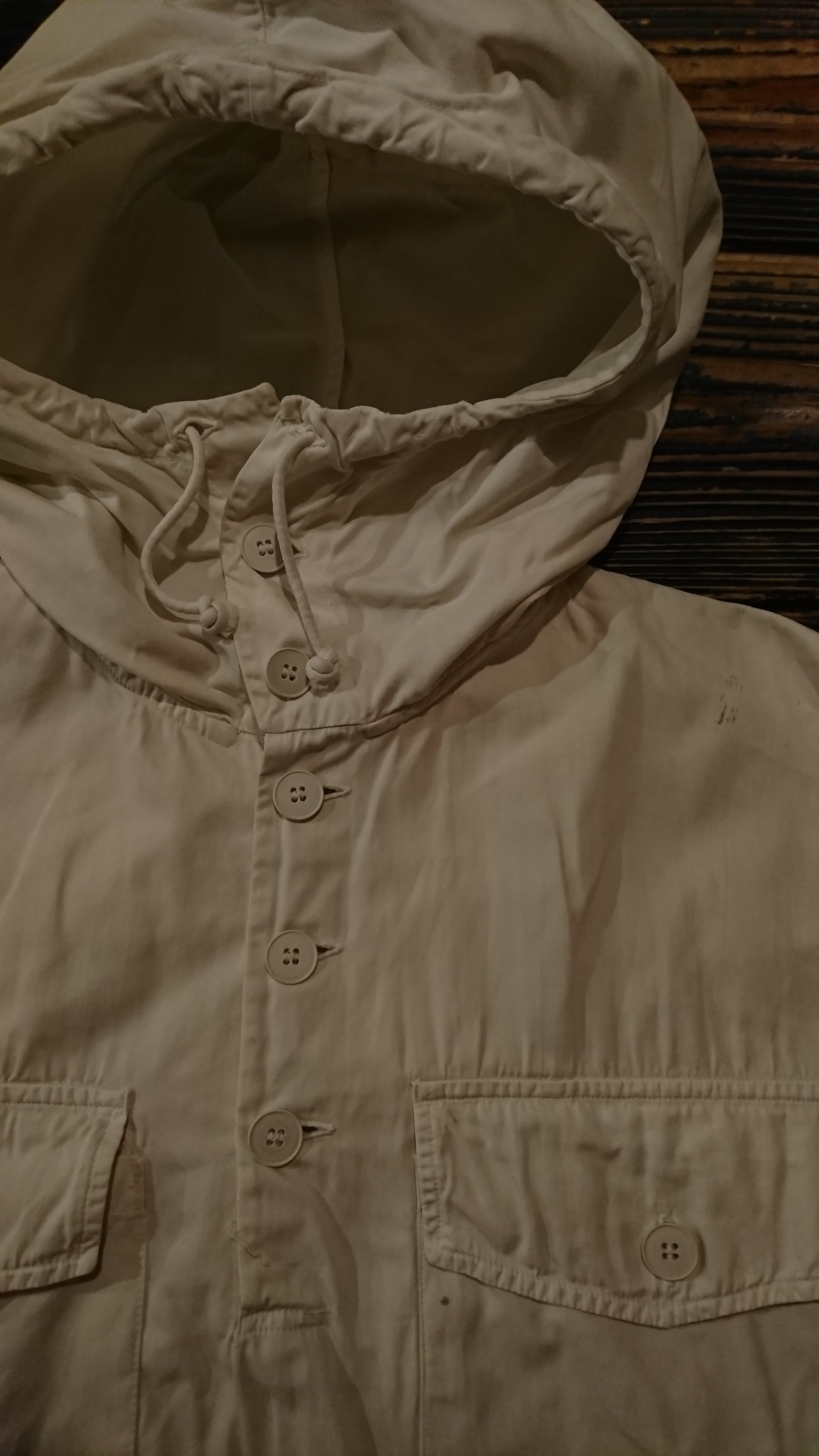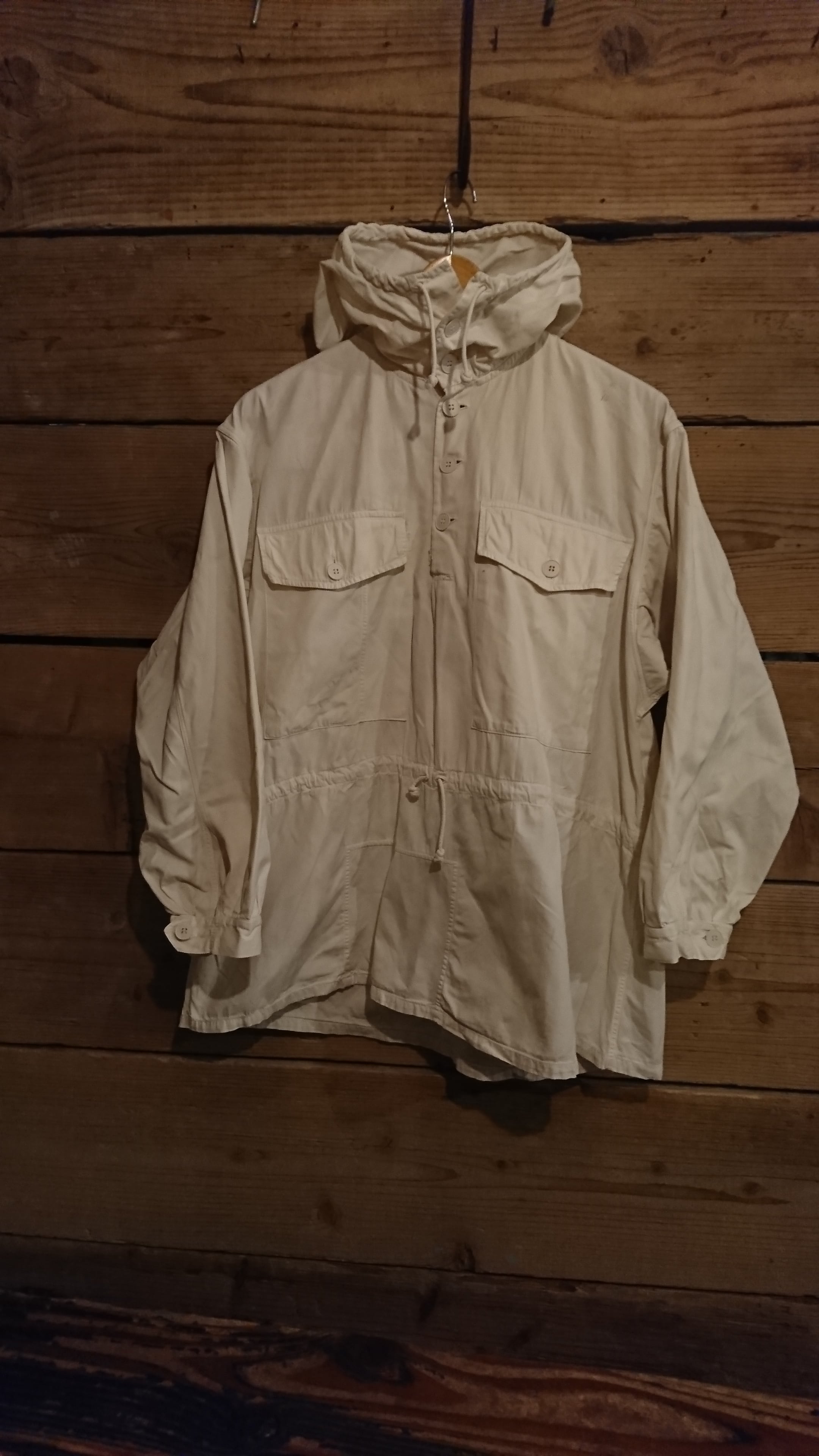 40年代のスイス軍のスノーパーカーになります。コットン生地で、プルオーバーでボタンとめの