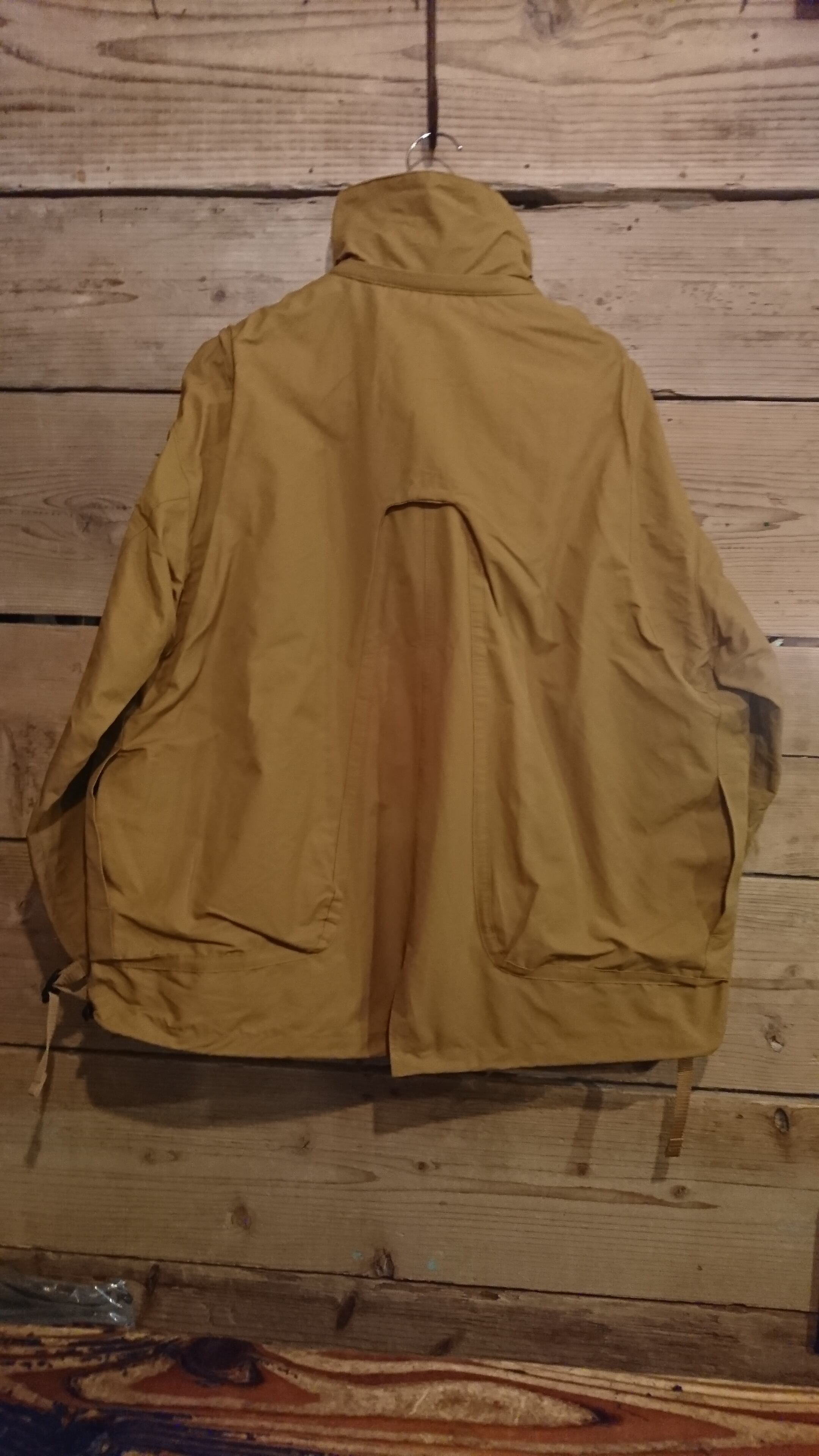 全面に張り巡らし、背面のポケットの形状はヴィンテージの米軍のC-1ベストのデザインを落とし込む。シワ感の強い撥水綿ナイロンを使用。