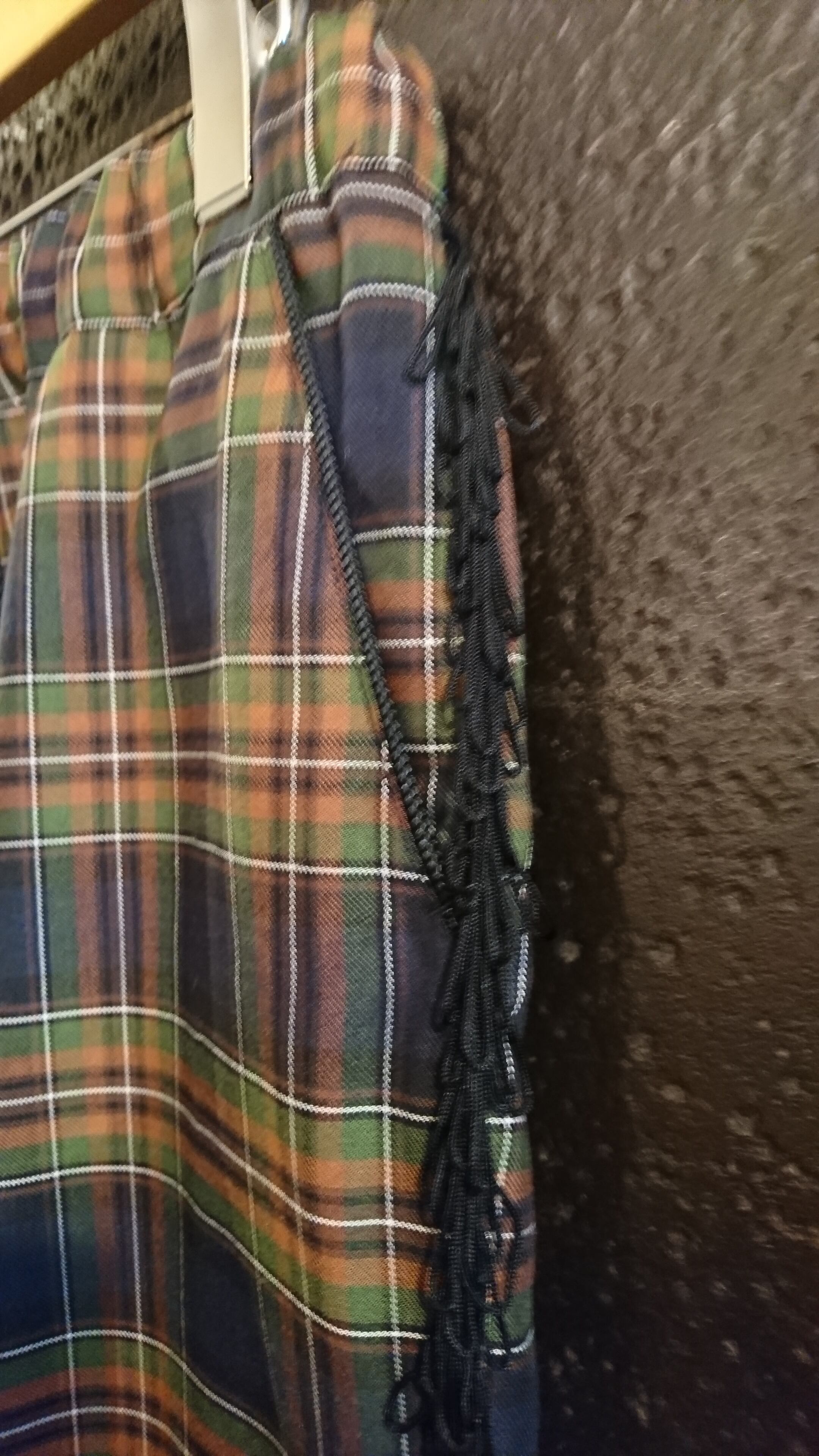 イージーパンツ。柔らかくドレープのでる生地感。トラッドな配色のチェックを使用することで