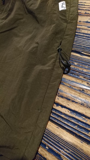 撥水リップナイロン100。3レイヤーより軽くはける仕様に。脇にヒドゥンポケットあり。
