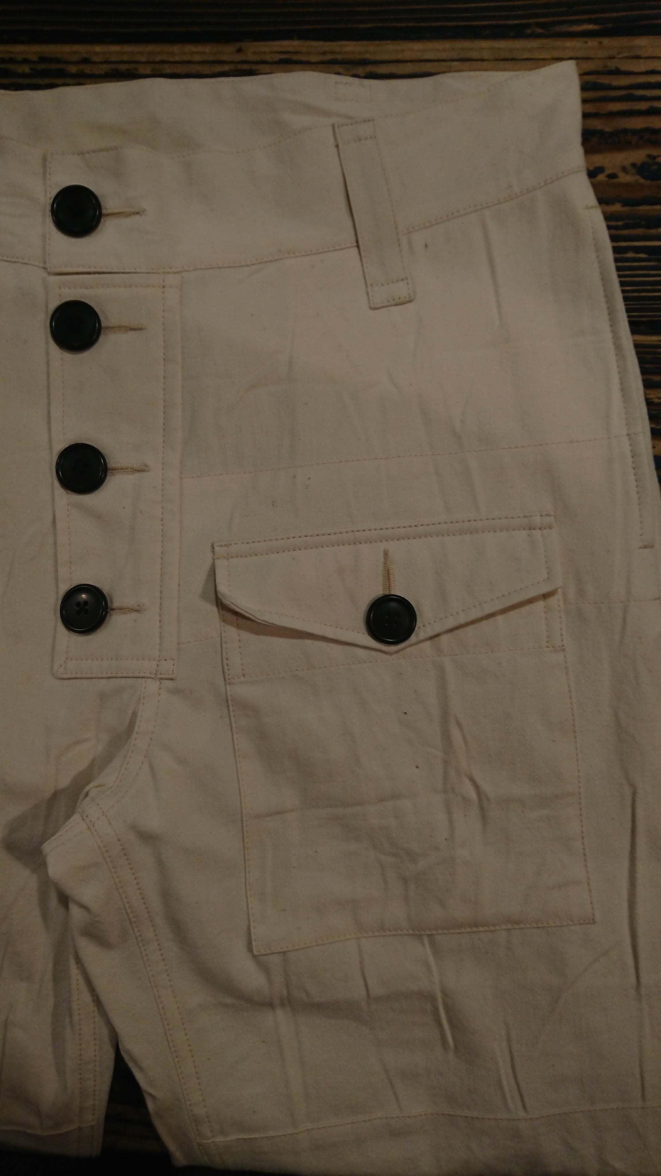 パッカリングや表情がヴィンテージそのものなのは、説明不用ですね。ミリタリークロージングたる所以の事細かな縫製仕様、負荷の掛かりやすい箇所への補強なども忠実に再現して縫製されています。こちらも貴重なヴィンテージを使用している為、13本限定の生産となります。