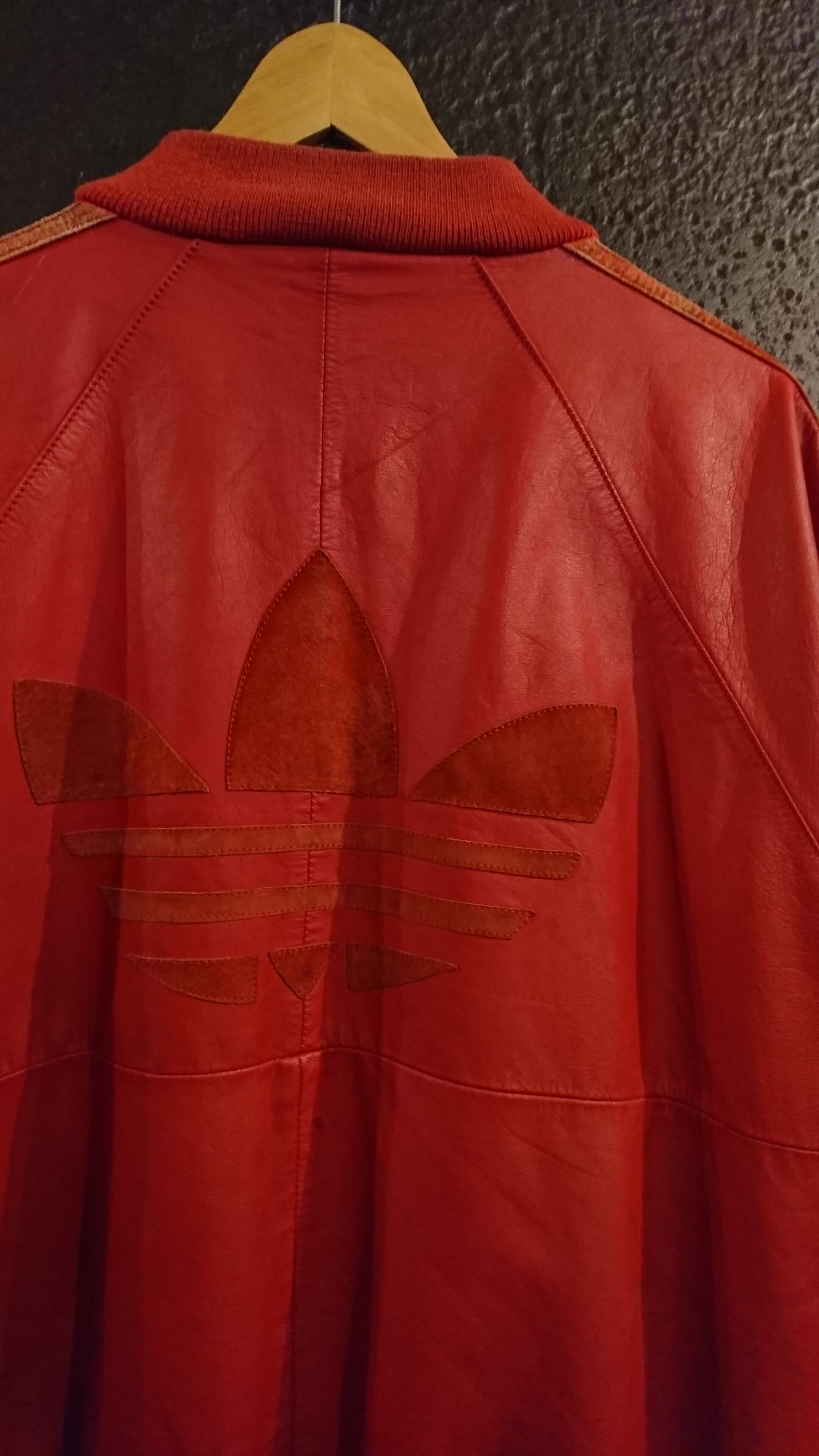 80年代 adidasのレザートラックジャケットになります。赤 × 赤の配色。着用感あり。多少擦れ、汚れ等ありますが致命的な傷は無いコンディション。早々入荷もないアイテム。お探しの方、