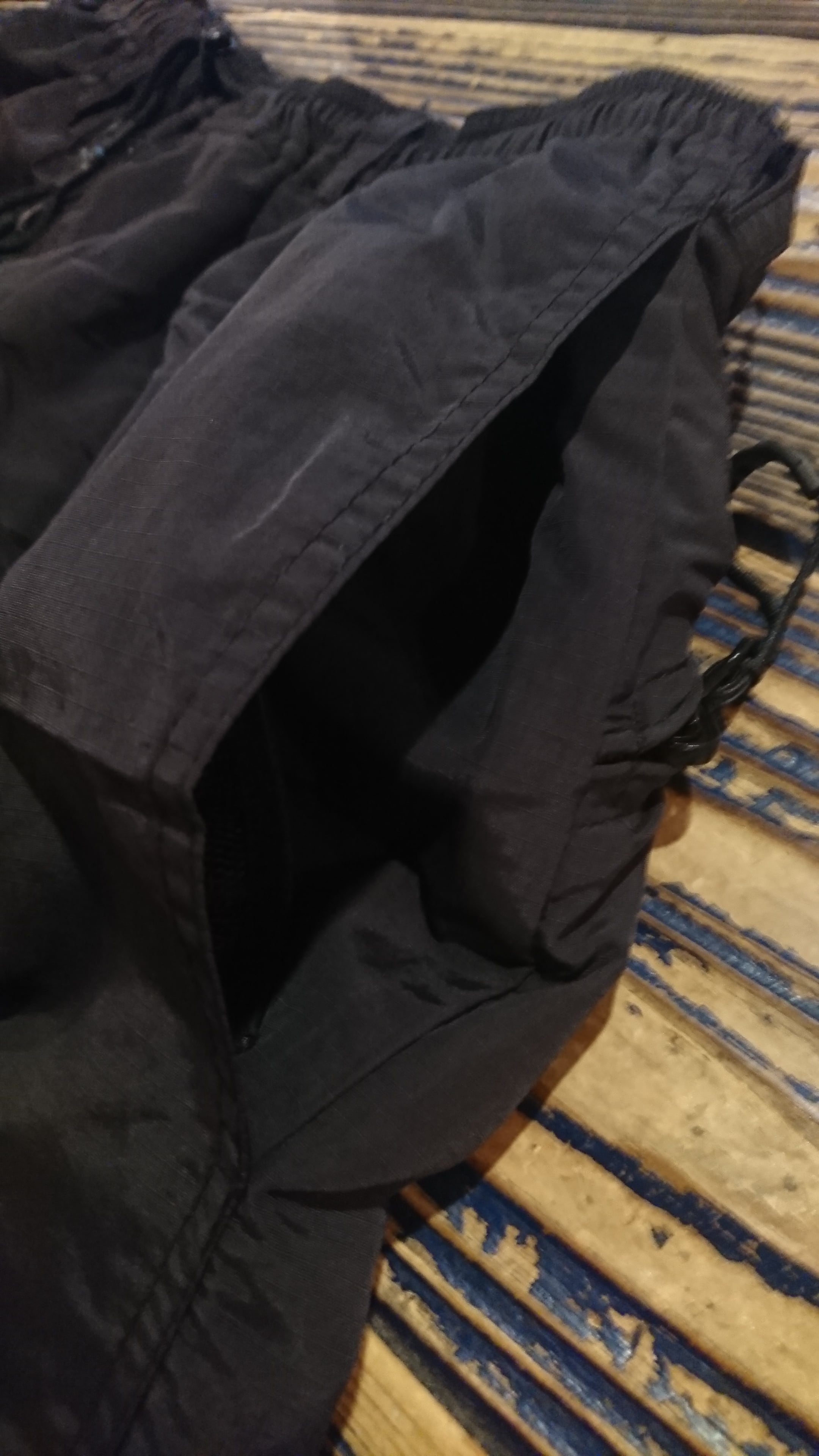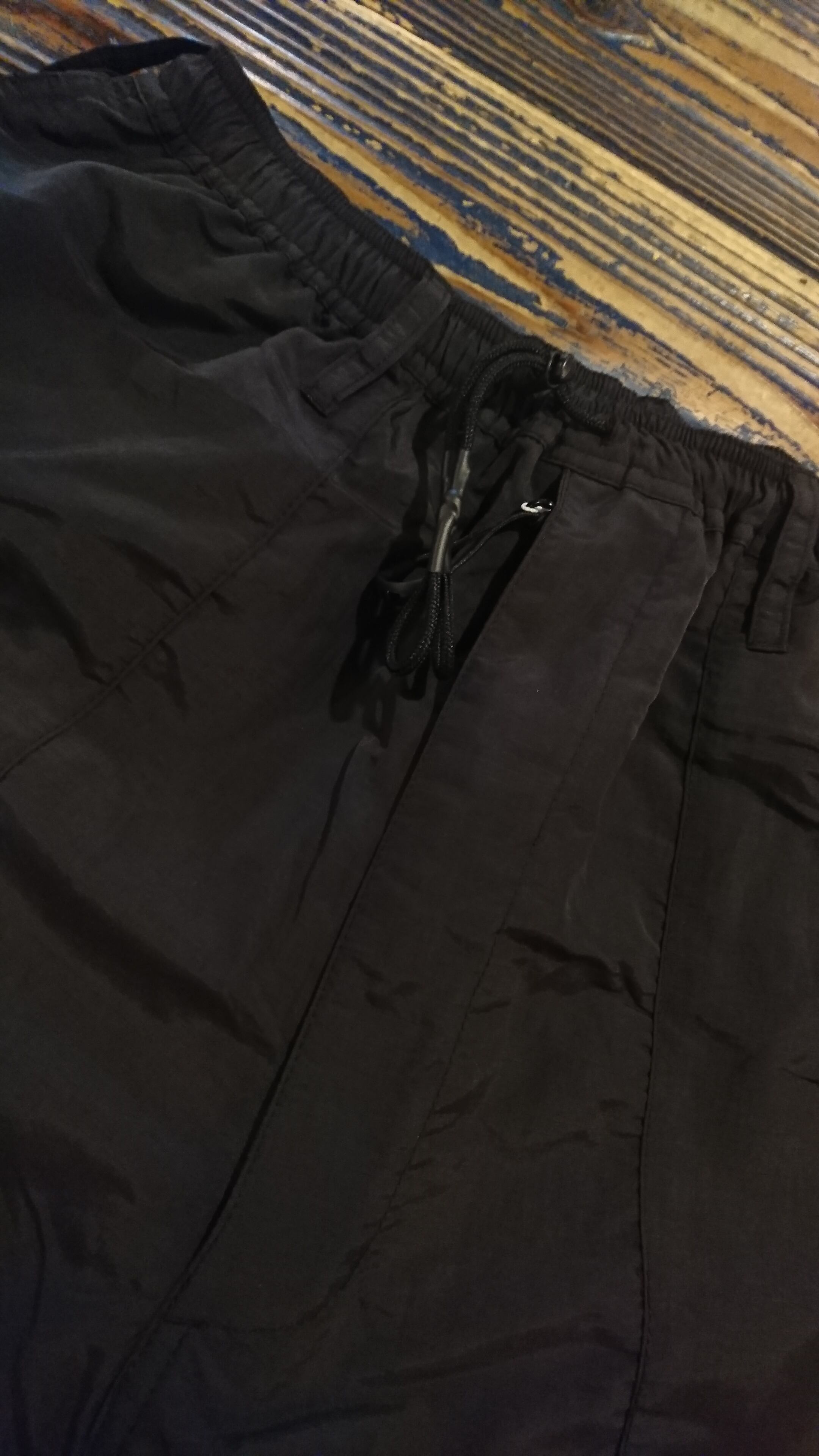 所謂バギーショーツをCMFなりに解釈し再構成したウエストはそのままに股上を深くし横幅を広げ、股下はそのままの長さに。生地は撥水塩縮加工が入ったナイロン100を採用した。とても軽く仕上げてありライニングはメッシュしてある為、海パンにも使用できる。左ポケットはパッカブル仕様。