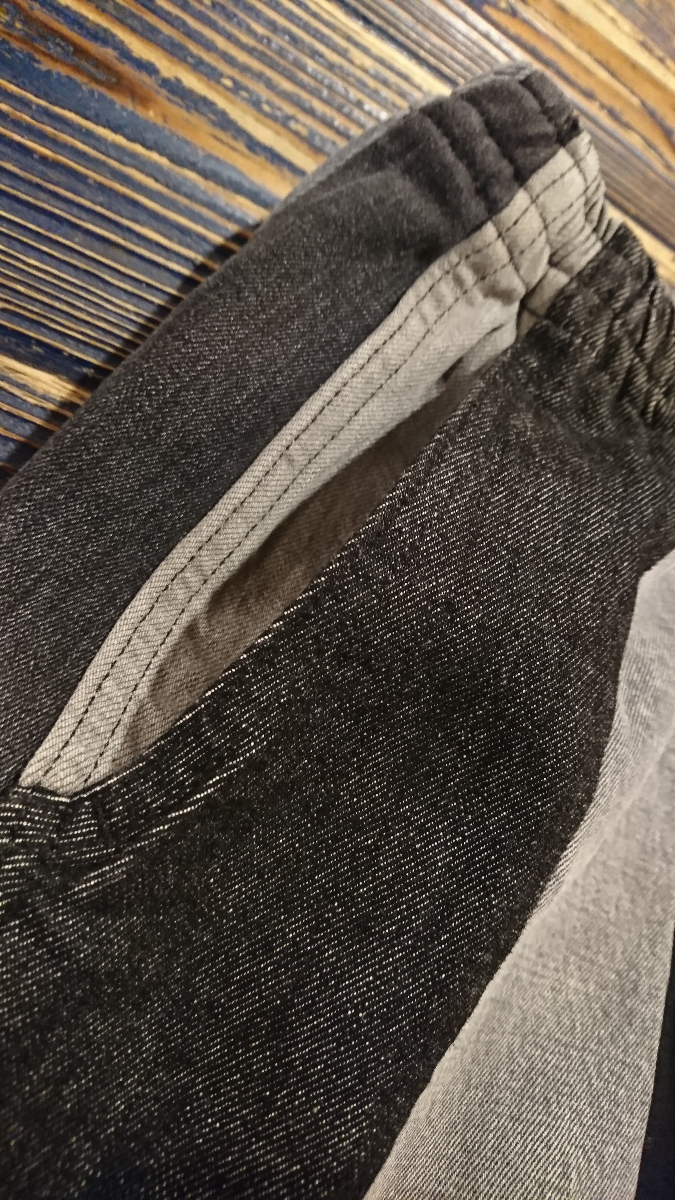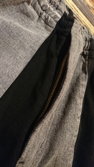 ブラックデニム解体してパッ チワークしアップサイクルしたイージーパンツ 。