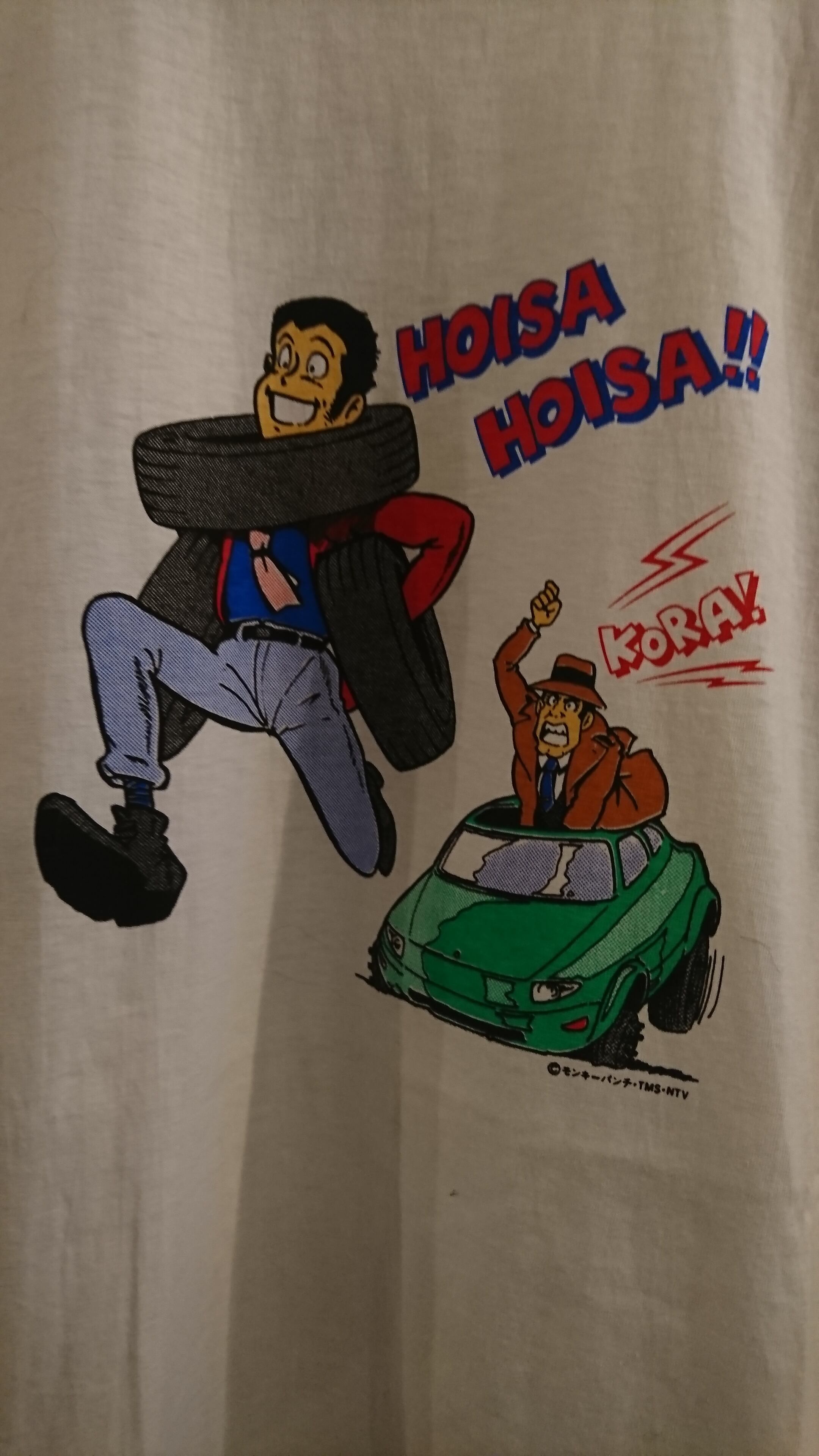 BRIDGESTONEとのコラボもの。90年代位のものになります。アニメ関連のTシャツでルパン三世はある意味通好み。気になった方、かなりオススメです!