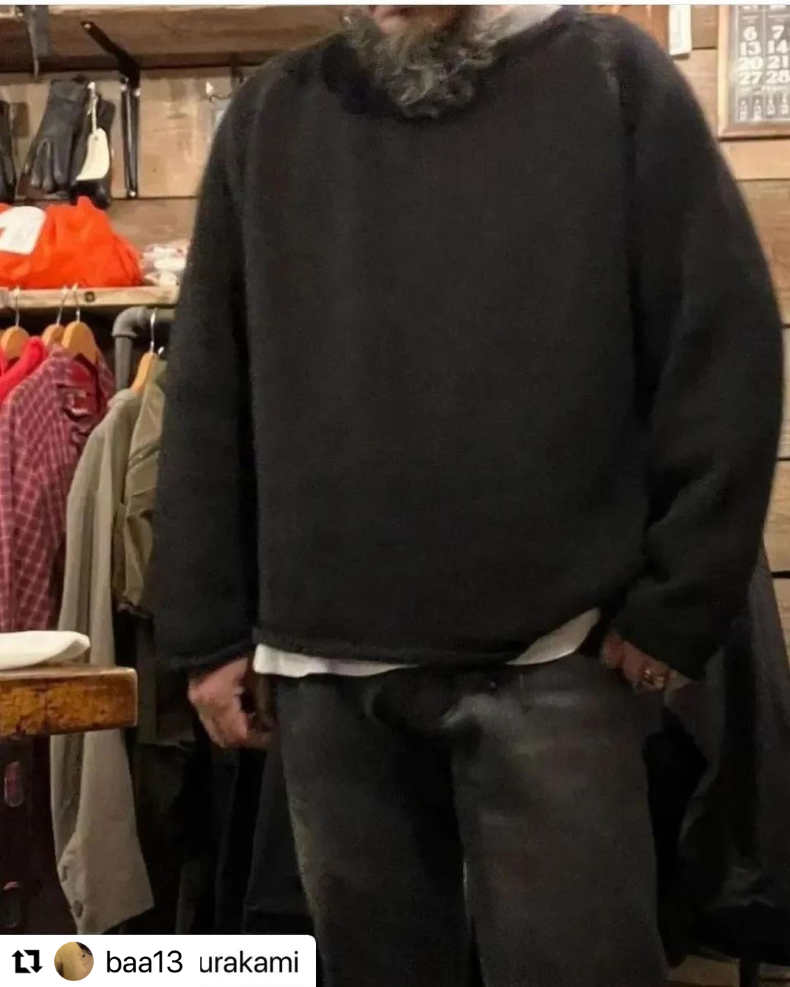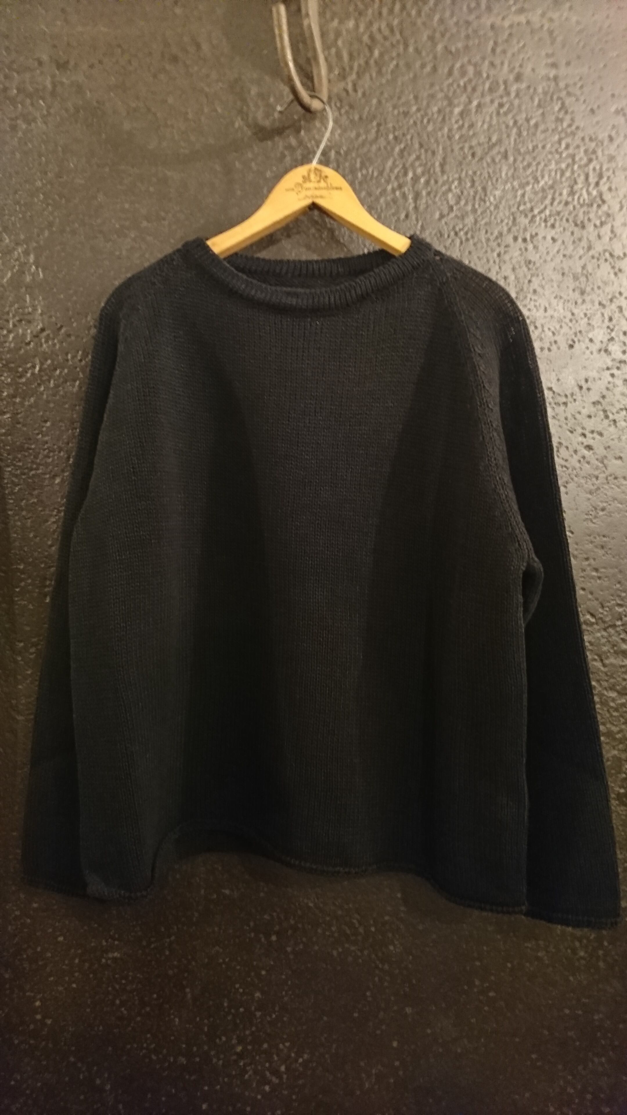 太番手のcotton52%、hemp48%の糸で編まれたオールリンキング仕様の本格的なサマーニットになります。サマーシーズンのみならず、ウィンターシーズンでも活躍するオールラウンドニット!カラーは、ブラックのみ展開、洗い込むと墨黒へと変貌いたします。サイズ展開は、R(レギュラー)とL(ロング)の着丈袖丈のみ違う2サイズとなります。