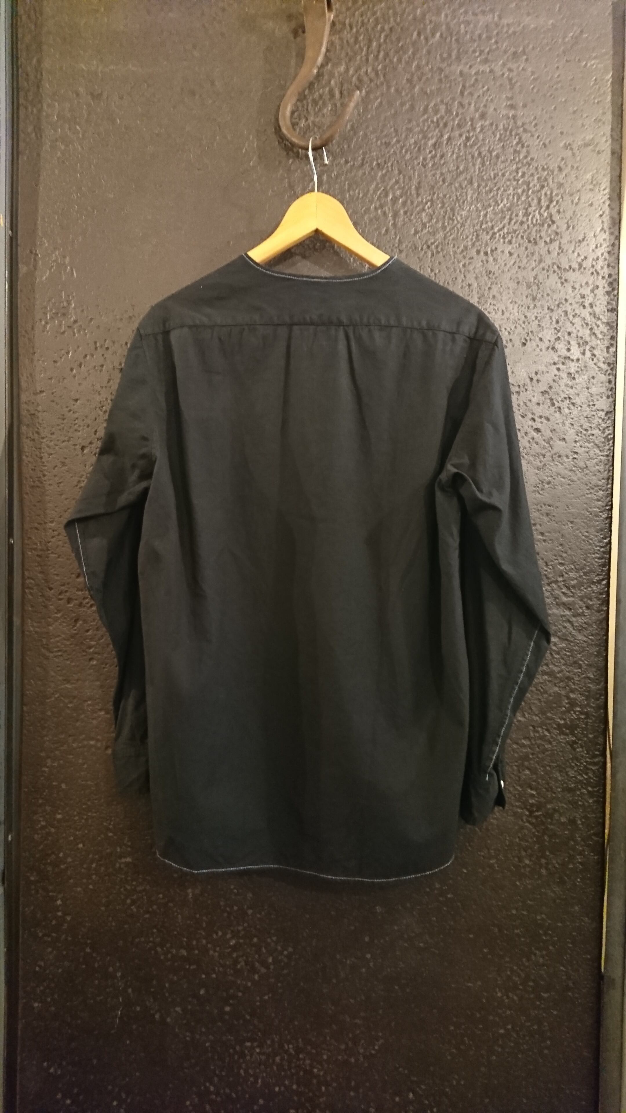 クルーネックタイプで左肩部分にボタンがつきスリットが入ってるので脱ぎ着しやすくなってます。袖にはカフスが付きます。無駄を削ぎおとしたシンプルなデザイン。色々なスタイルに使っていただきたいシャツです。